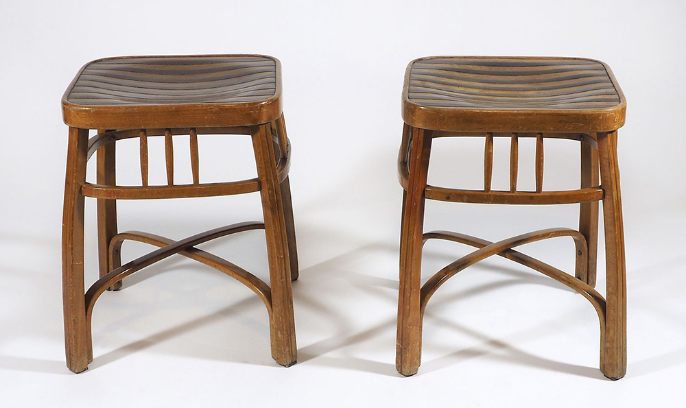 J & .J. Kohn: coppia di sgabelli in legno modello 616/S con seduta a 2 tipi...