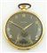 CYMA: orologio da tasca in metallo dorato inciso, quadrante scuro con secondi al sei.
