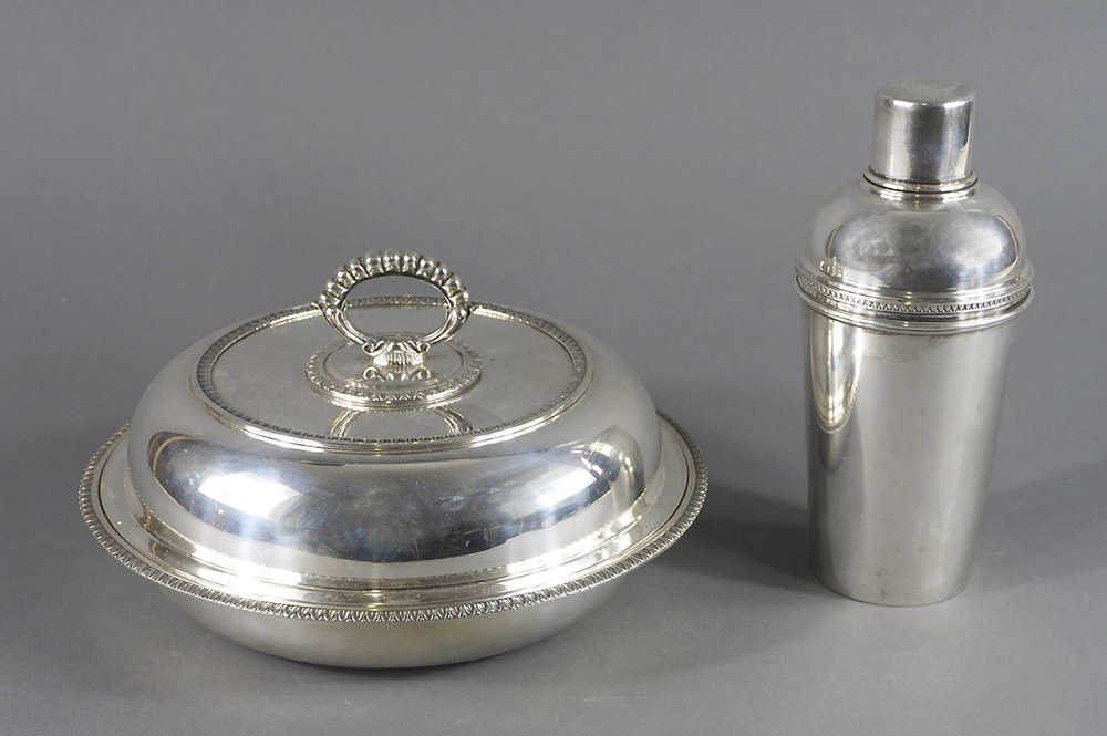Lotto in argento composto da shaker e scaldavivande. gr. tot 1650.