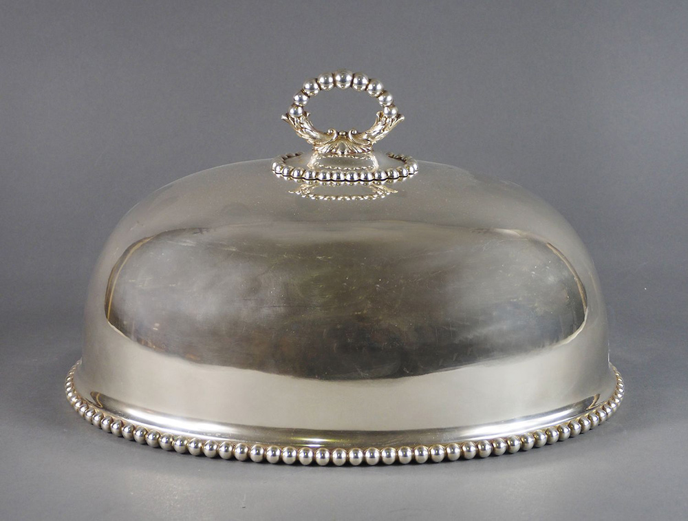 Coprivivande ovale in metallo argentato. cm. 28x36.