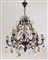 Lampadario in bronzo dorato a 6 luci, decorato da cristalli colorati.