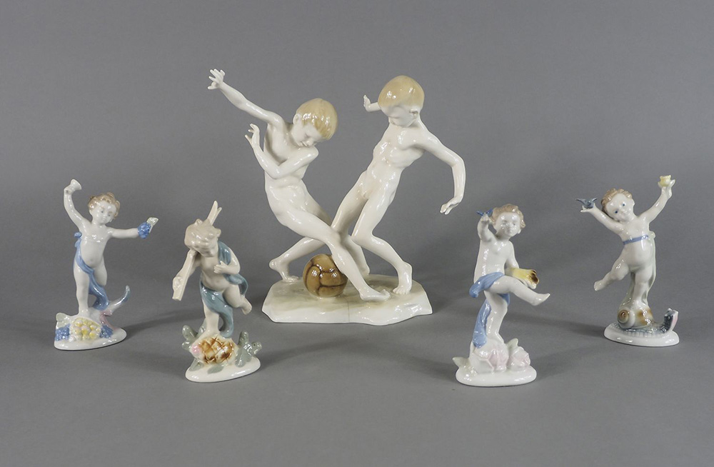 Lot 189 | Lotto di 5 statuine in porcellana policroma tra cui putti. H. max cm. 22.