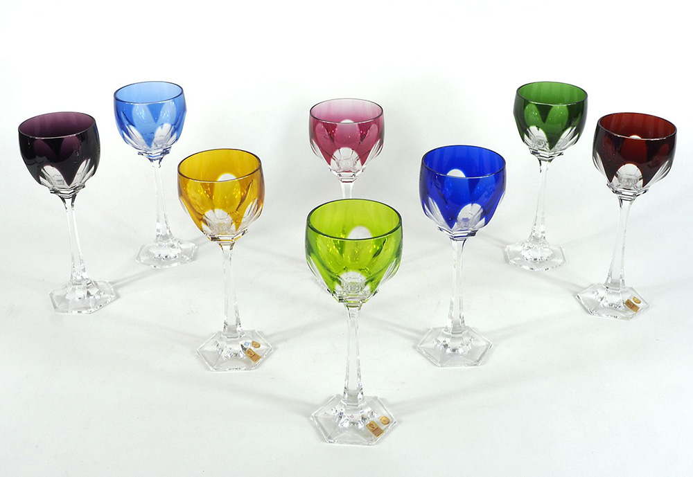 Nachtmann: lotto di 8 bicchieri colorati in cristallo. Firmati. H. cm. 21.