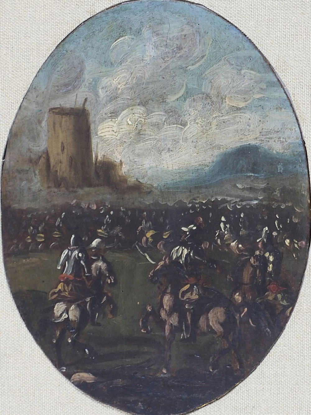 Maestro del XIX secolo "Battaglia" cm. 21x16 - olio su tavola Prov.: collezione Basilio Trieste.