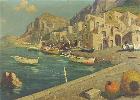 Pittore del XX secolo "Barche al porto" cm. 50x70 - olio su faesite Firmato...