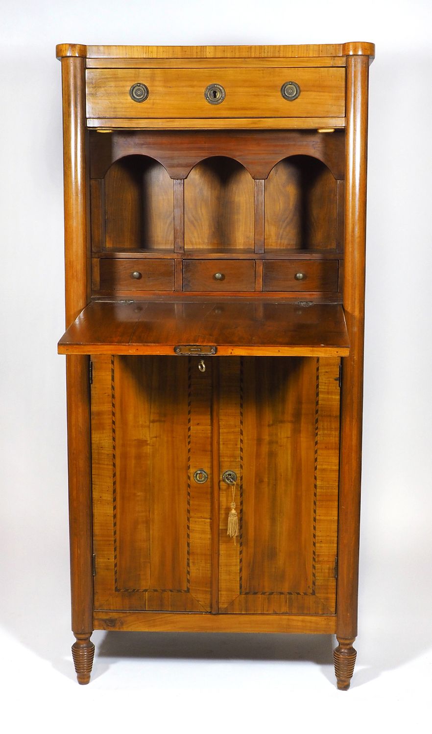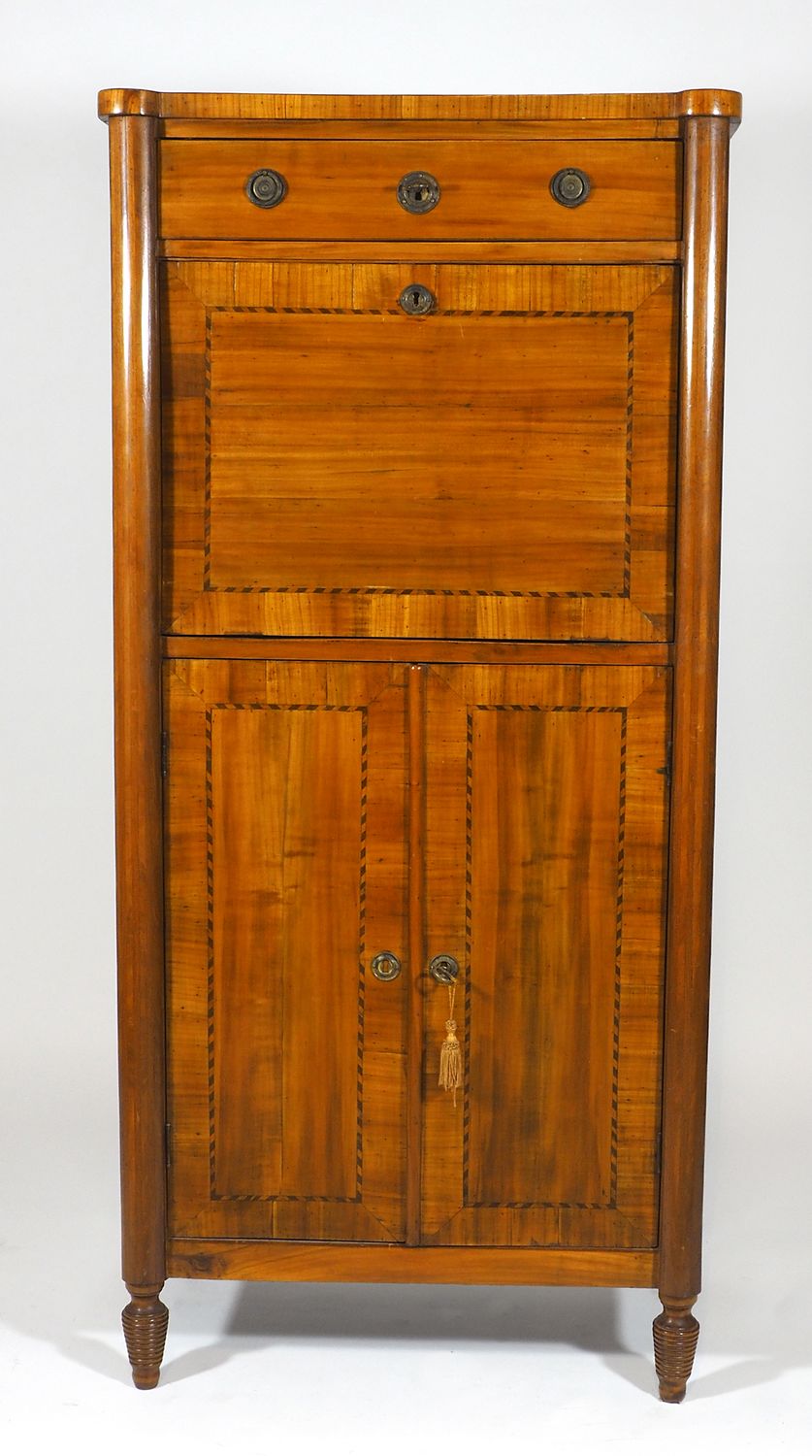 Secretaire in legno a 2 ante, cassetto e calatoia, intarsi a filettature in...
