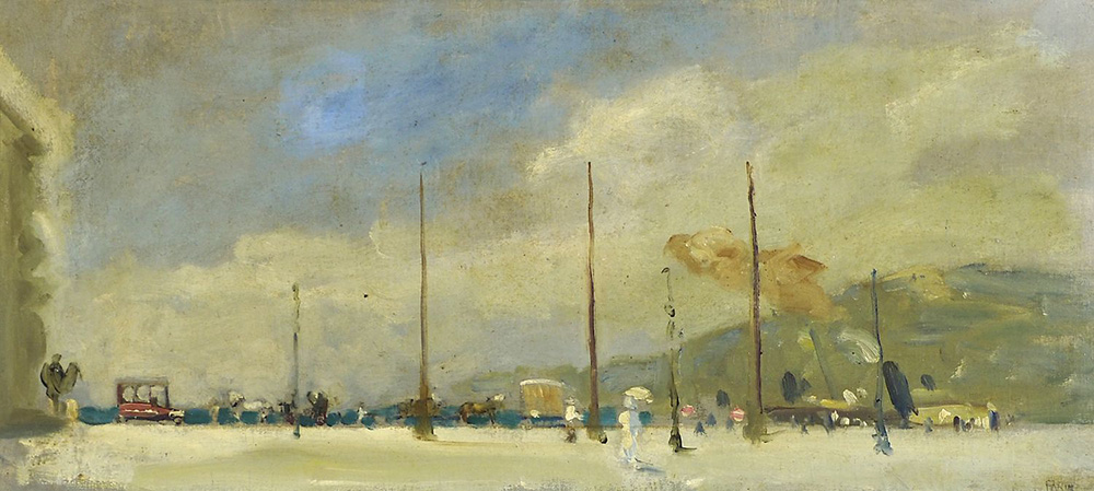 Gino Parin Trieste 1876 Dachau 1944 "Veduta di Piazza Unità" cm. 30x66 - olio su cartone Firmato b. a d. Cfr.: catalogo Gino Parin a cura Fondazione CRTrieste 2003, pag. 150-151.
