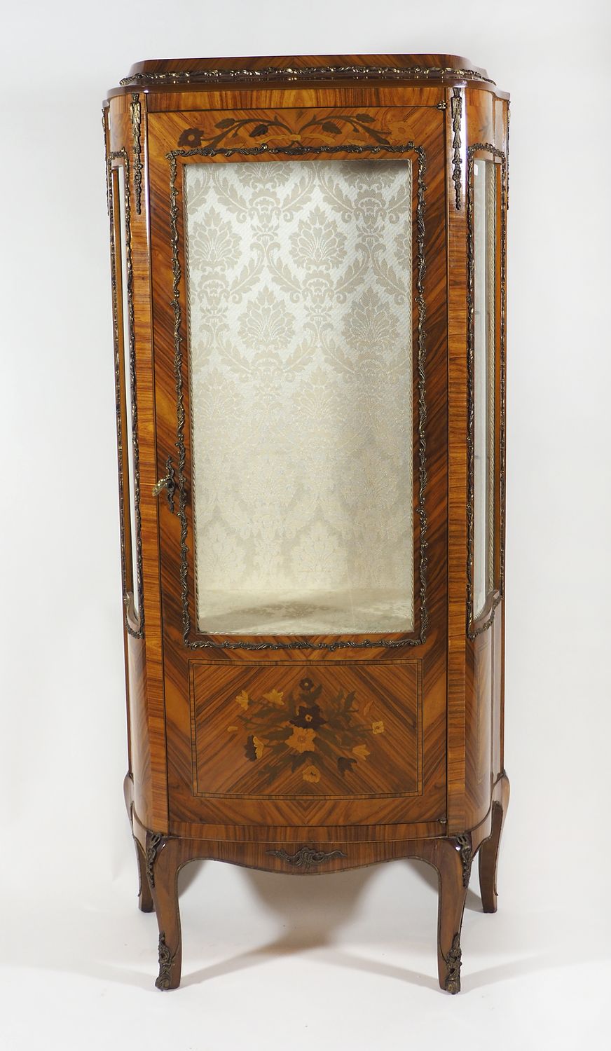 Vetrinetta da terra in legno con applicazioni in bronzo dorato. cm. 147x67x37.
