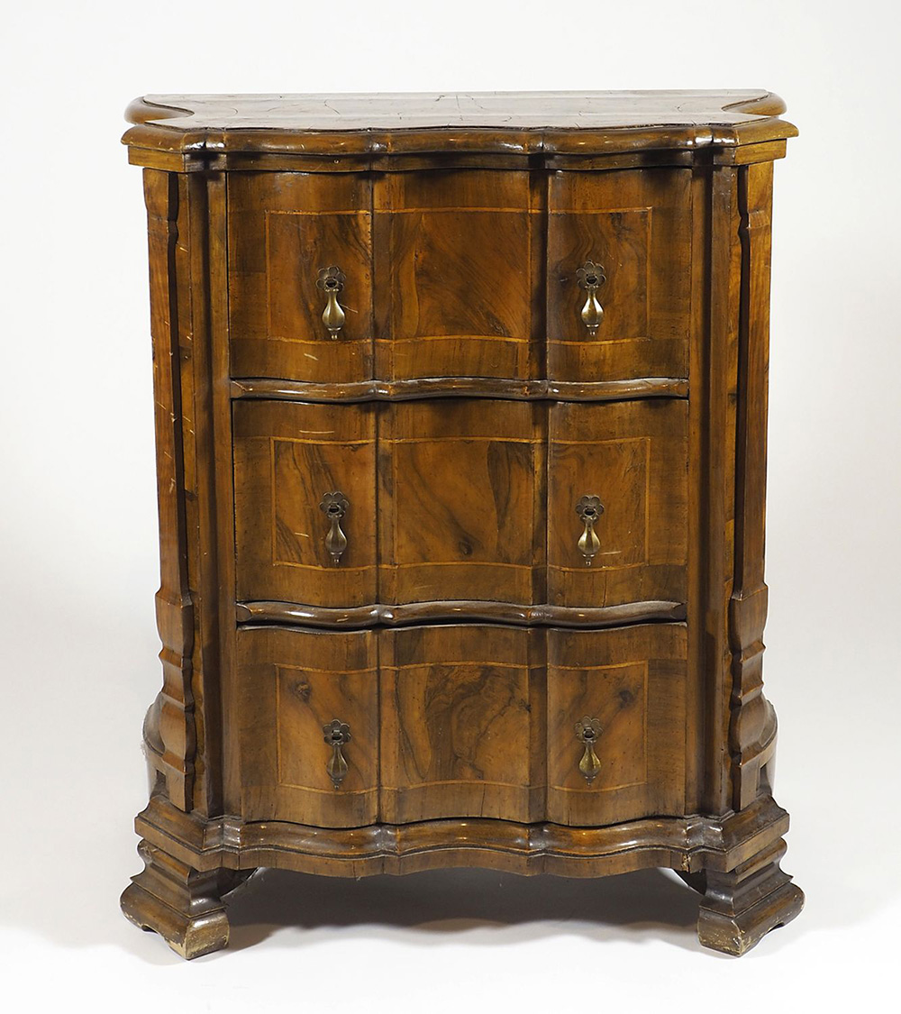 Comodino in legno a 3 cassetti, cm. 80x71x40.