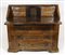 Cassettone in legno a 3 cassetti e calatoia, intarsi in legni vari, fronte...