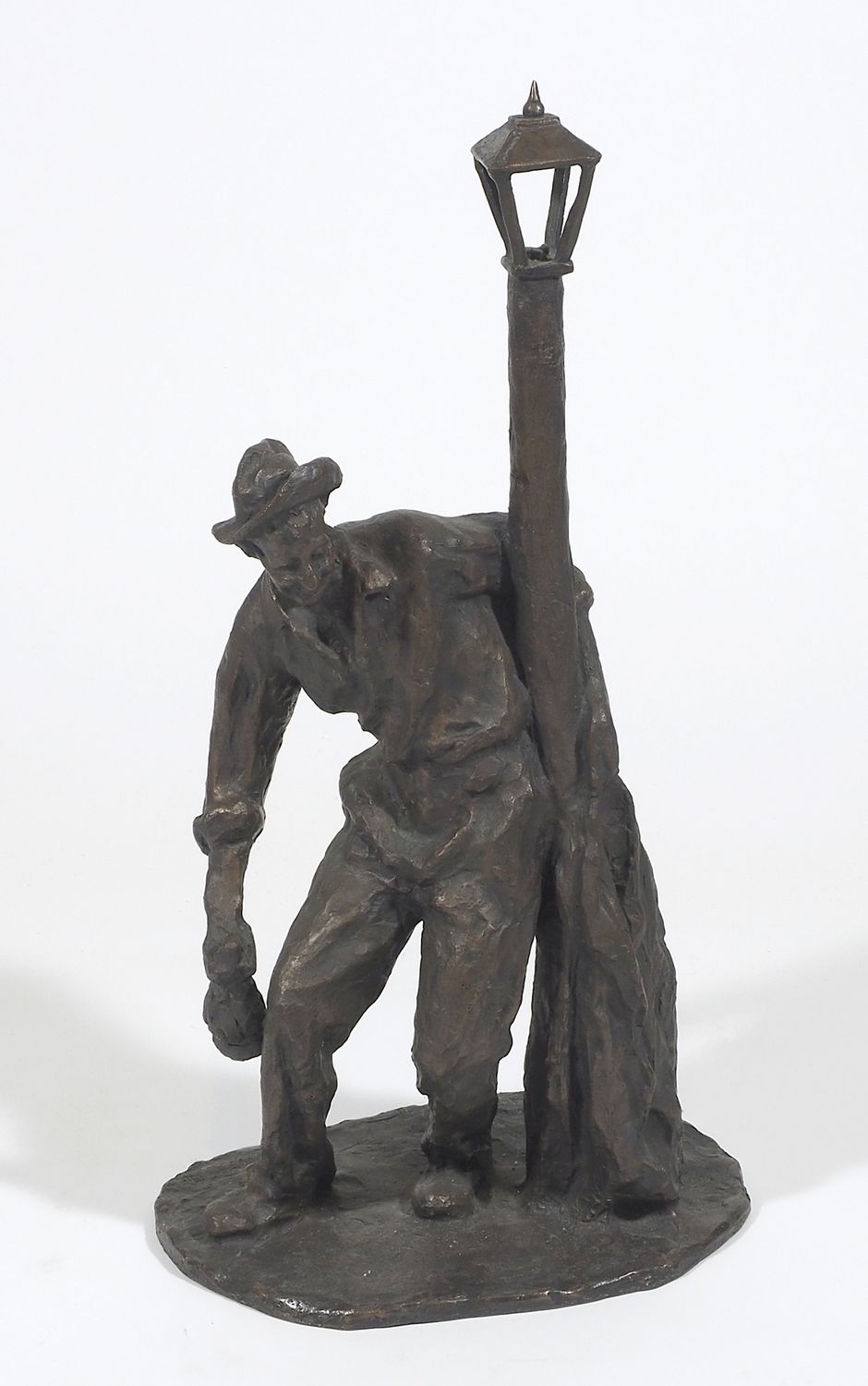 Silvio Monfrini 1894-1969 "Giornata difficile" h. cm. 61 - scultura in ronzo a patina marrone Firma incisa sulla base.