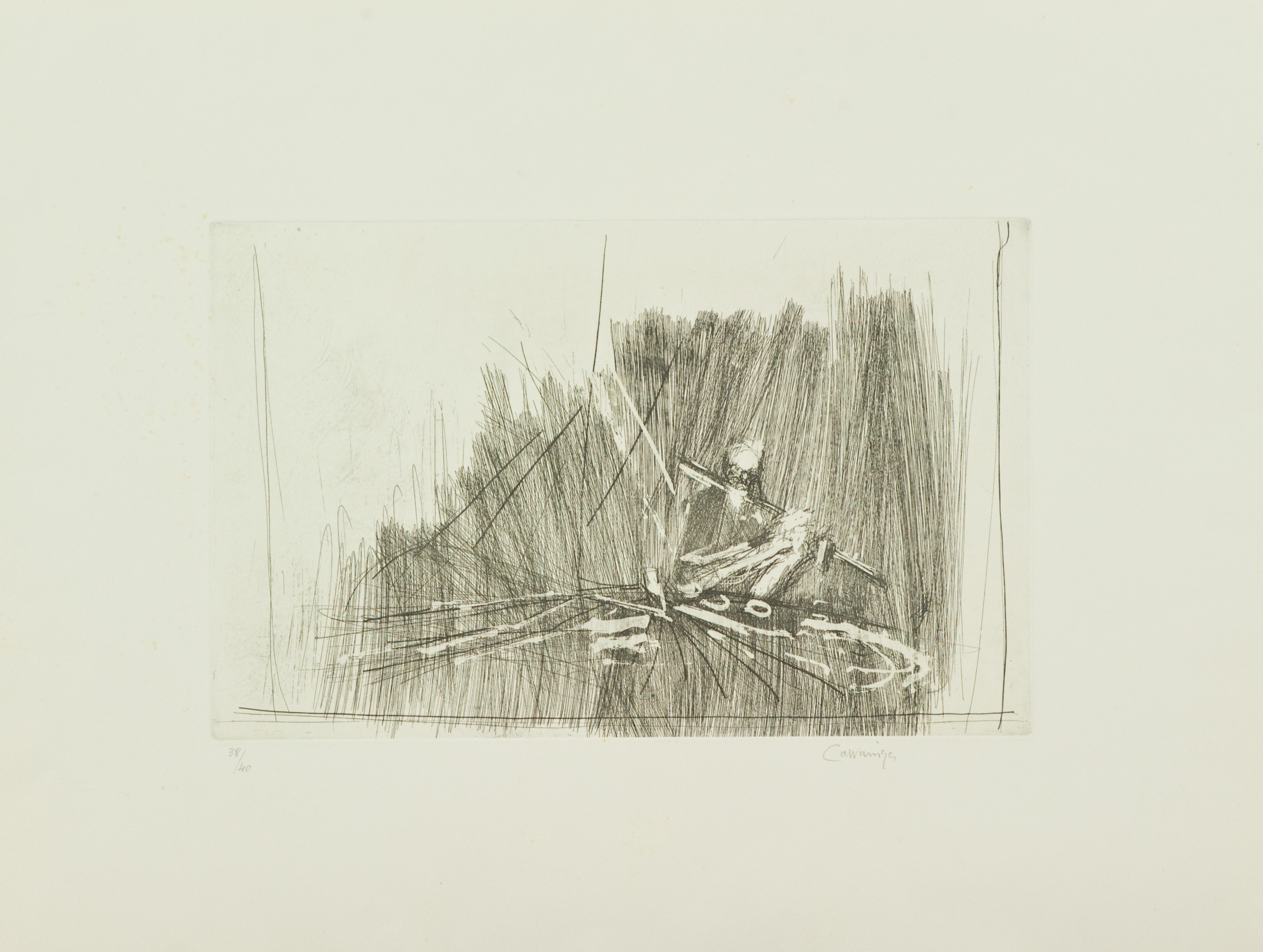 Giancarlo Cazzaniga Senza titolo Acquaforte di cm. 25x39,5, su carta di cm. 49x70, es. 38/40 La carta presenta lievi fioriture. Firma in basso a destra, tiratura in basso a sinistra.