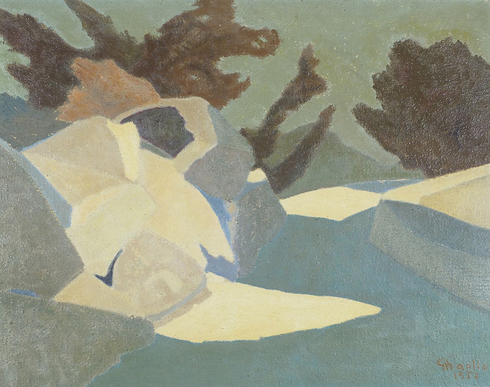 Manlio Guberti 1917-2003 "Meriggio" cm. 55x70 - olio su tela Firmato b. a d. e datato 1952. Al retro due etichette dell'Artista.