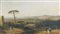 Pittore primi '900 "Campagna romana con cacciatore" cm. 19x34 - olio su tela...