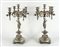 Paio di grandi candelabri in argento sbalzato e inciso a 5 fiamme sorrette da...