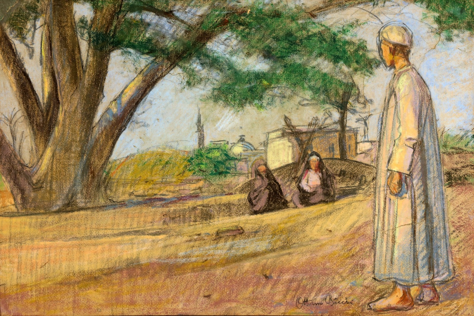 BICCHI OTTORINO (1878 - 1949) Untitled. Pastel on cardboard. Cm 31,00 x 47,00. Signature lower right.