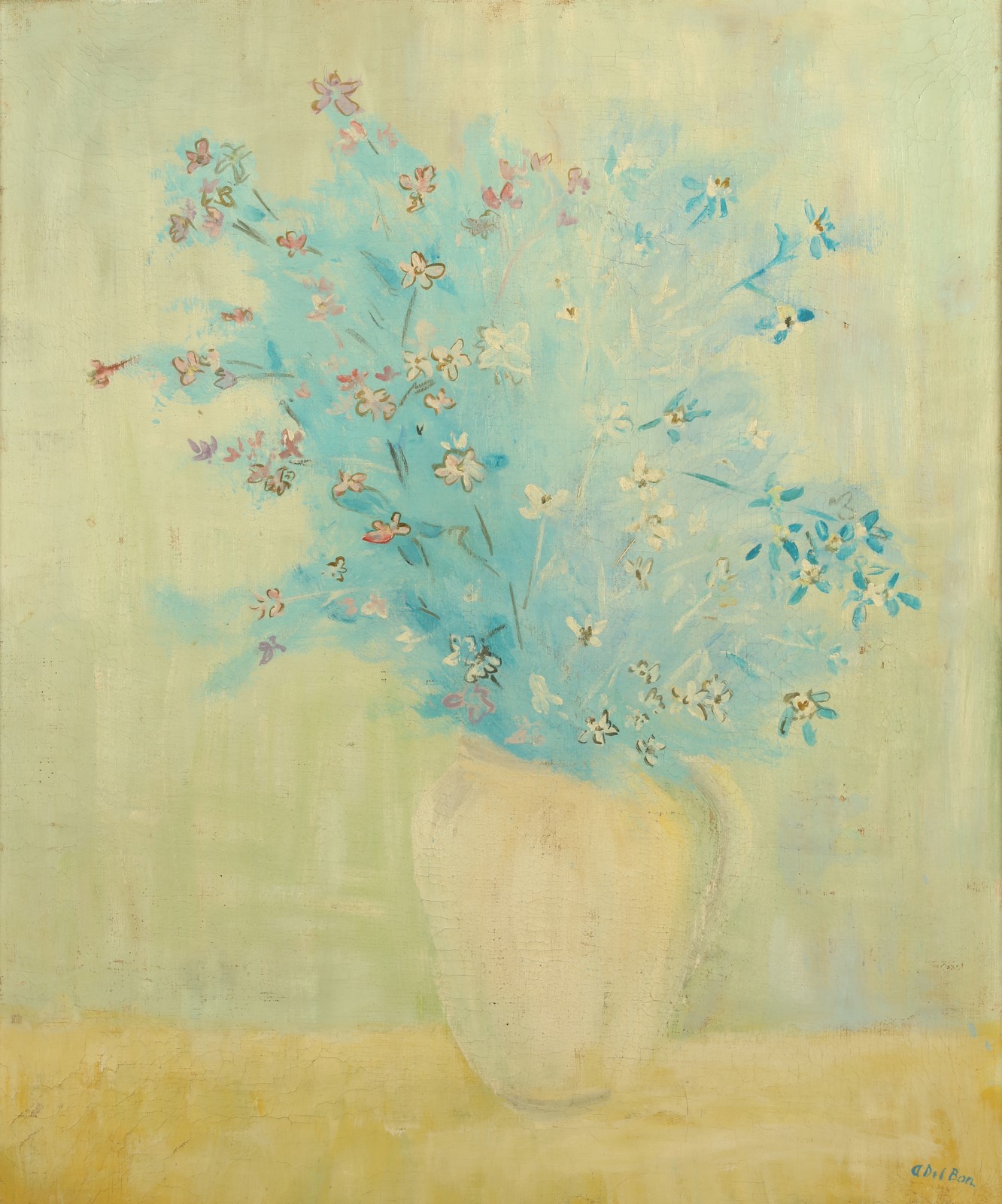 DEL BON ANGELO (1898 - 1952) Fiori bianchi e rose. . 1952. Olio su tela . Cm...