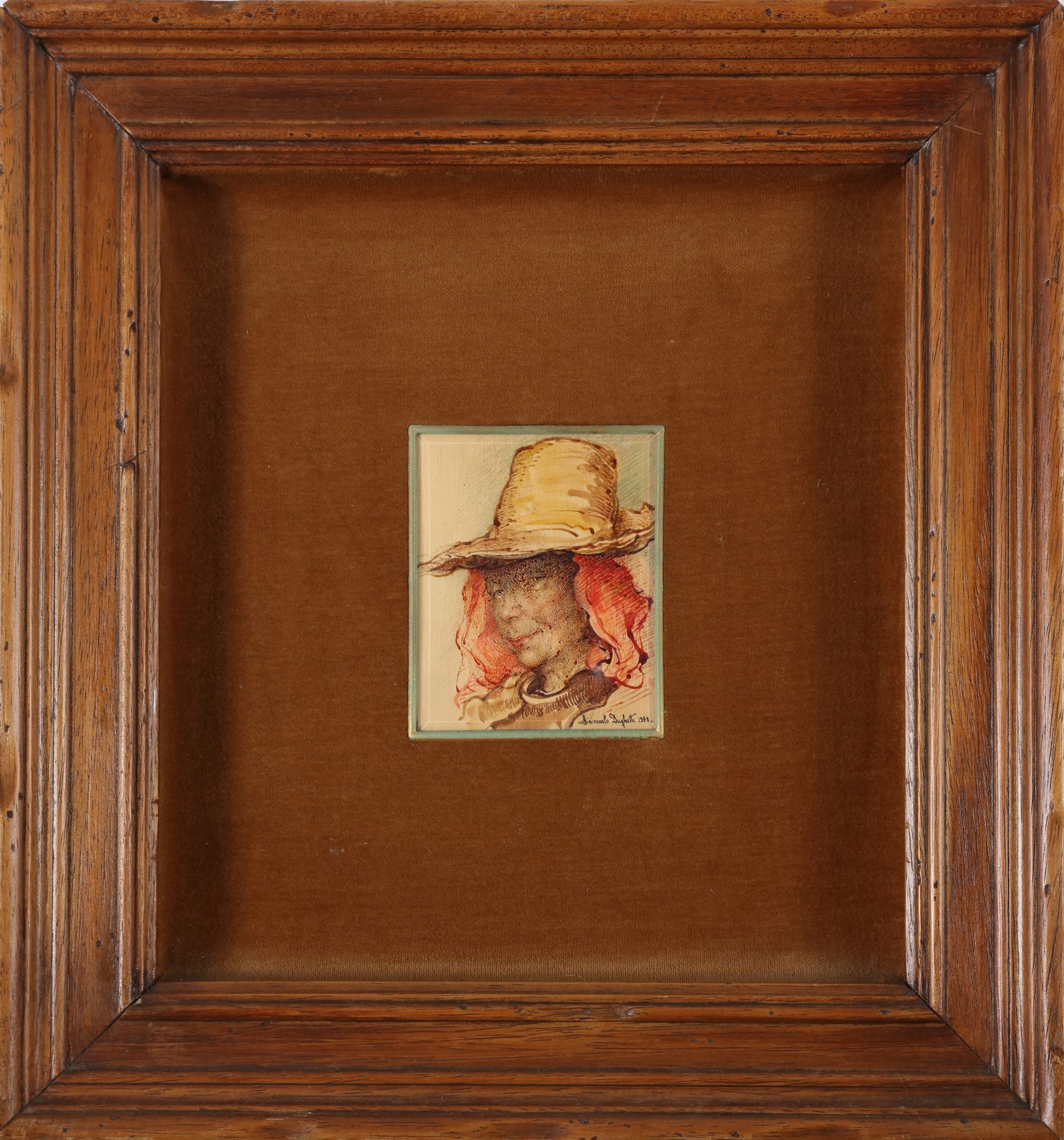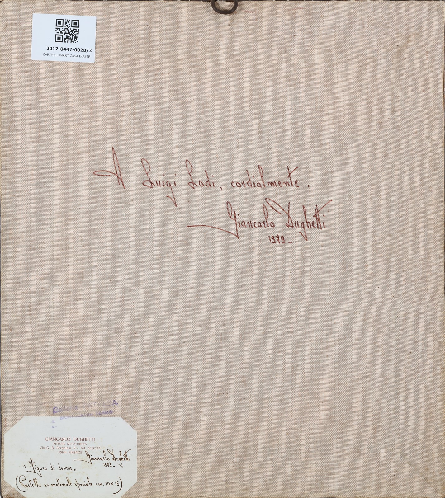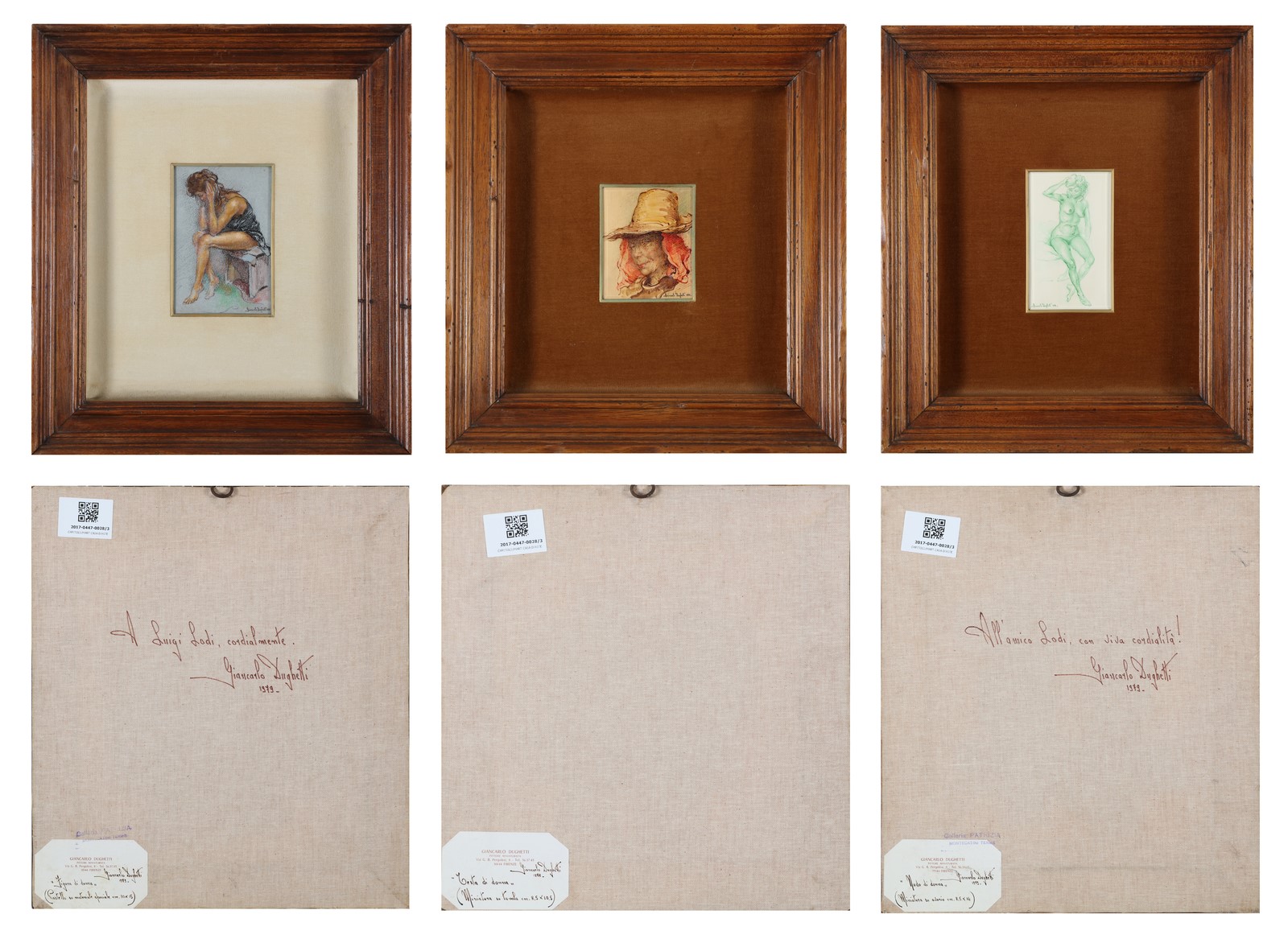 DUGHETTI GIANCARLO (1931 - 1986) Lot composed of 3 miniatures. Miniature. . Woman head; signature and year lower right, 1978, 10x9 cm. Woman figure, signature and year lower right and at the back, 1979, 15x10 cm. Woman nude: signature and year lower left and at the back, 1979, 14.5x9 cm. Cornice presente