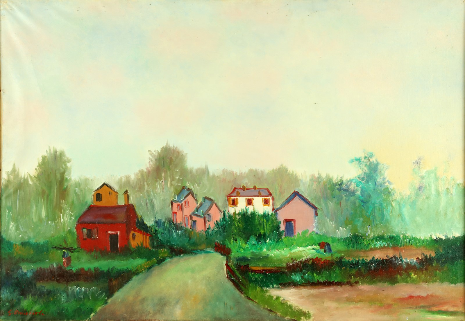 OMICCIOLI GIOVANNI (1901 - 1975) Untitled. 1968. Oil on canvas . Cm 100,00 x 70,00. Signature lower left. At the back title, signature, dedication and year.. Cornice presente