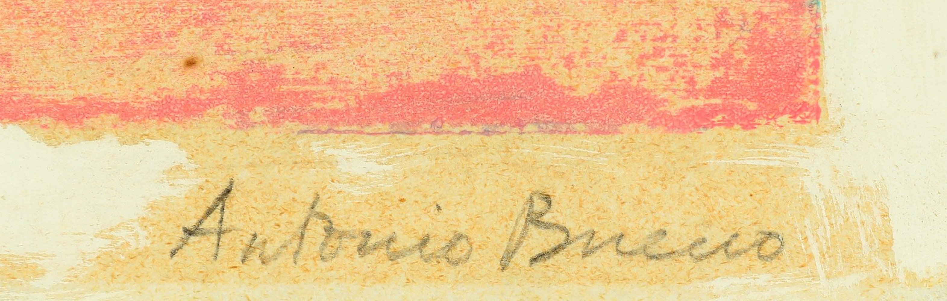 BUENO ANTONIO (1918 - 1985) Flowerpot. Mixed media on paper on canvas. Cm 35,00 x 45,00. Signature lower right. Isabella Bueno's authenticity certificate on photo.70 's. Cornice presente