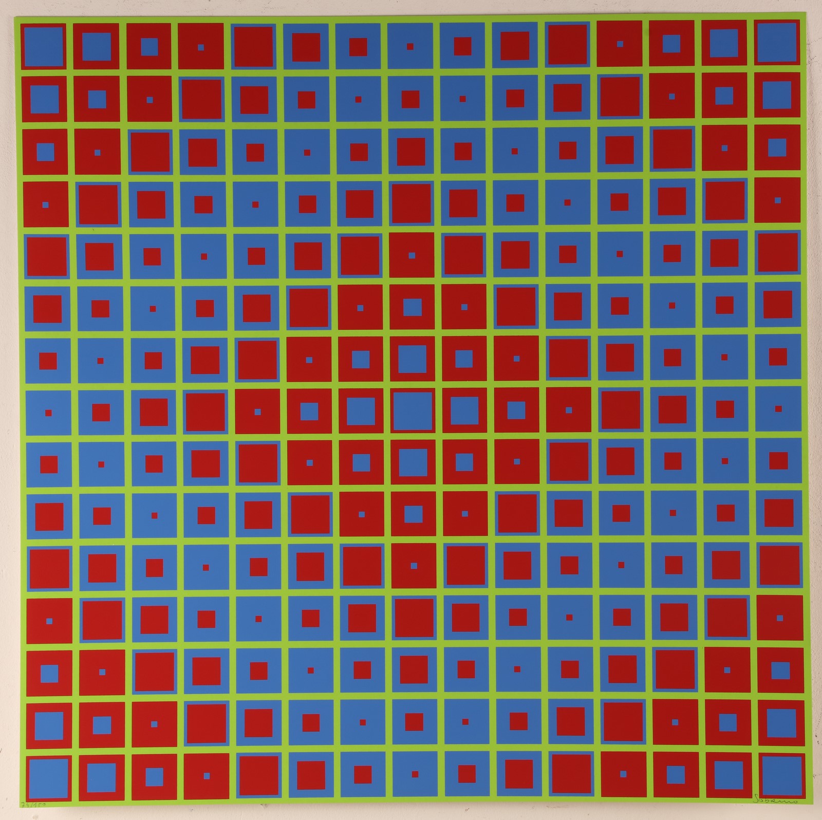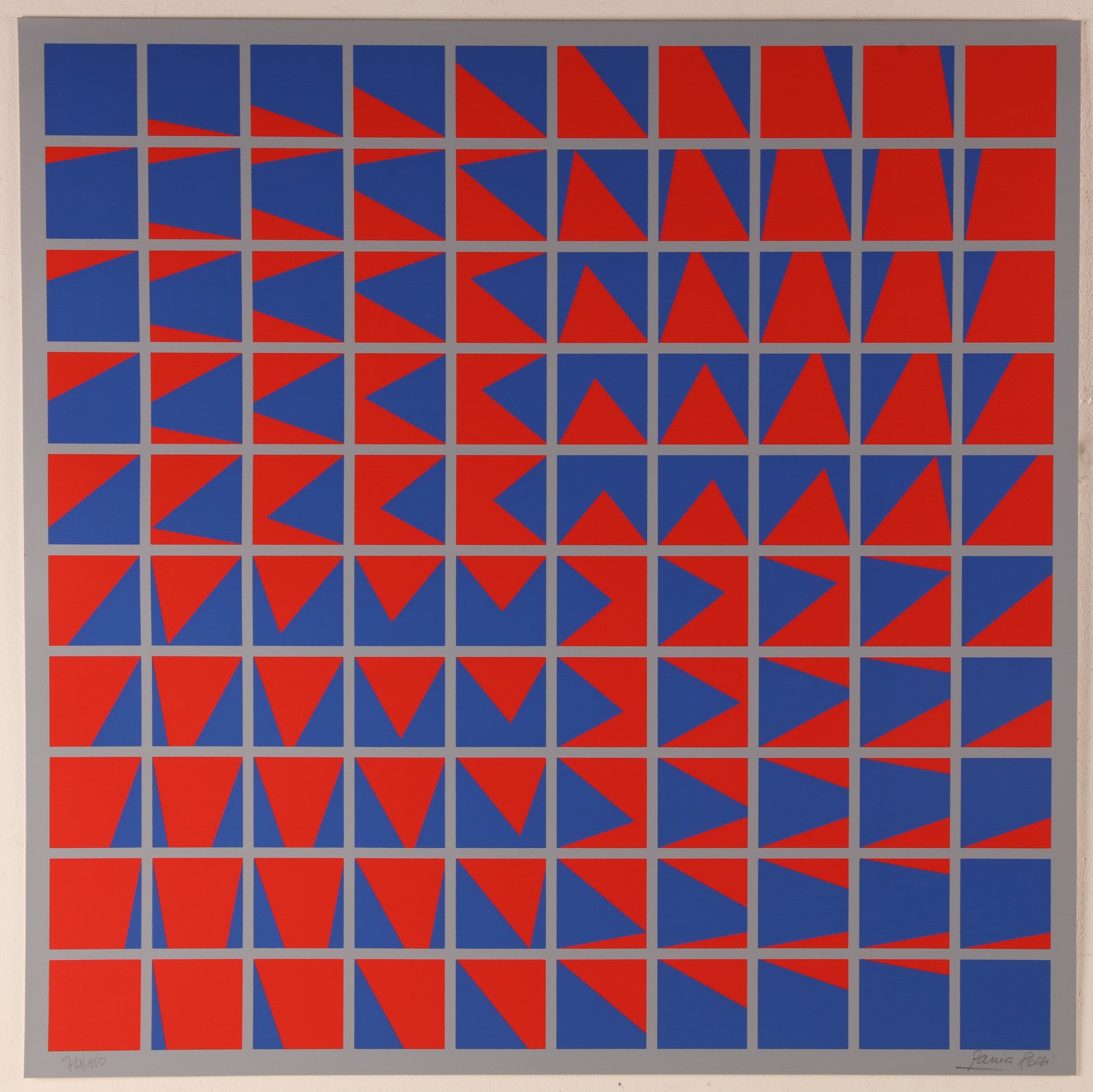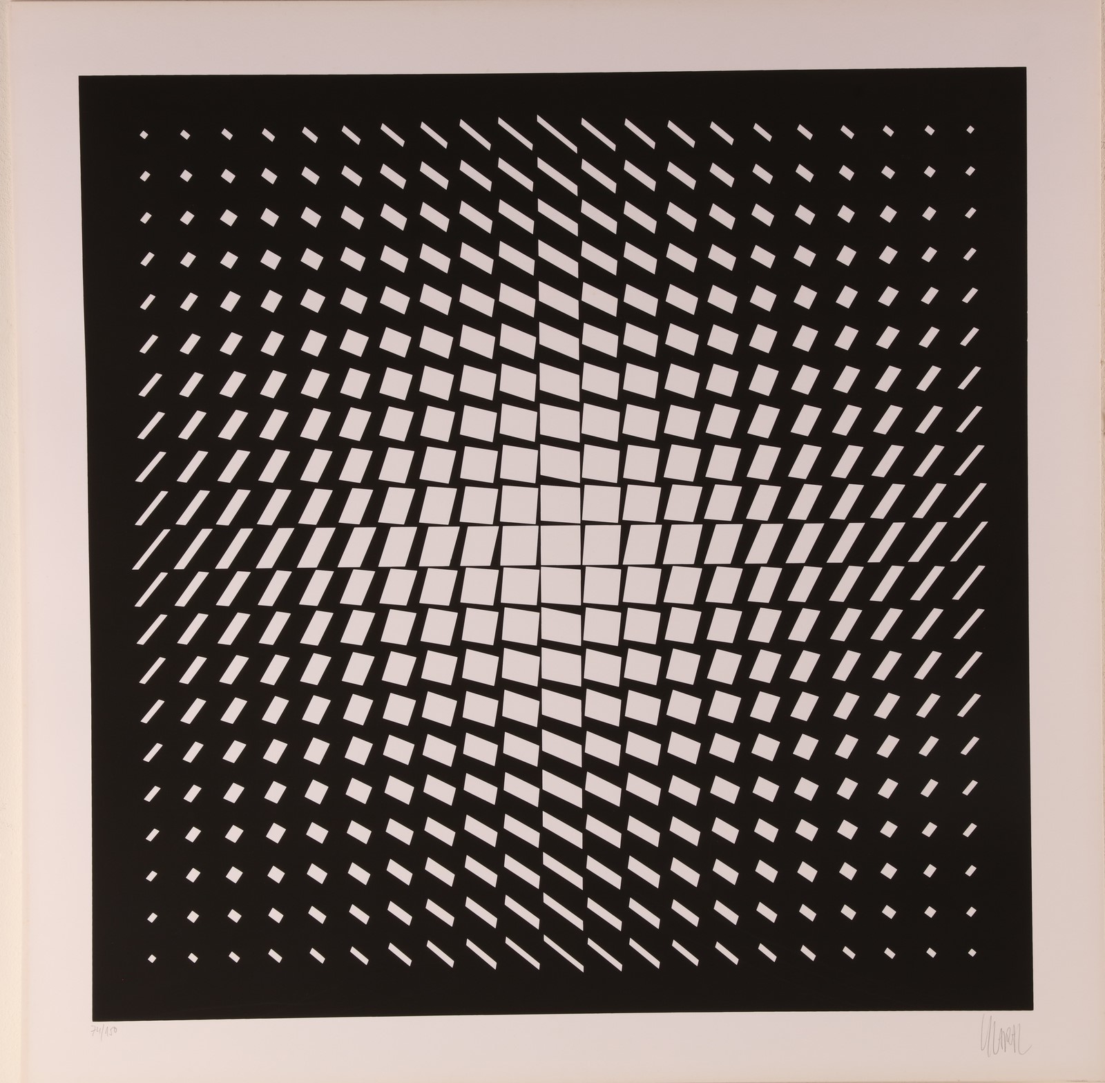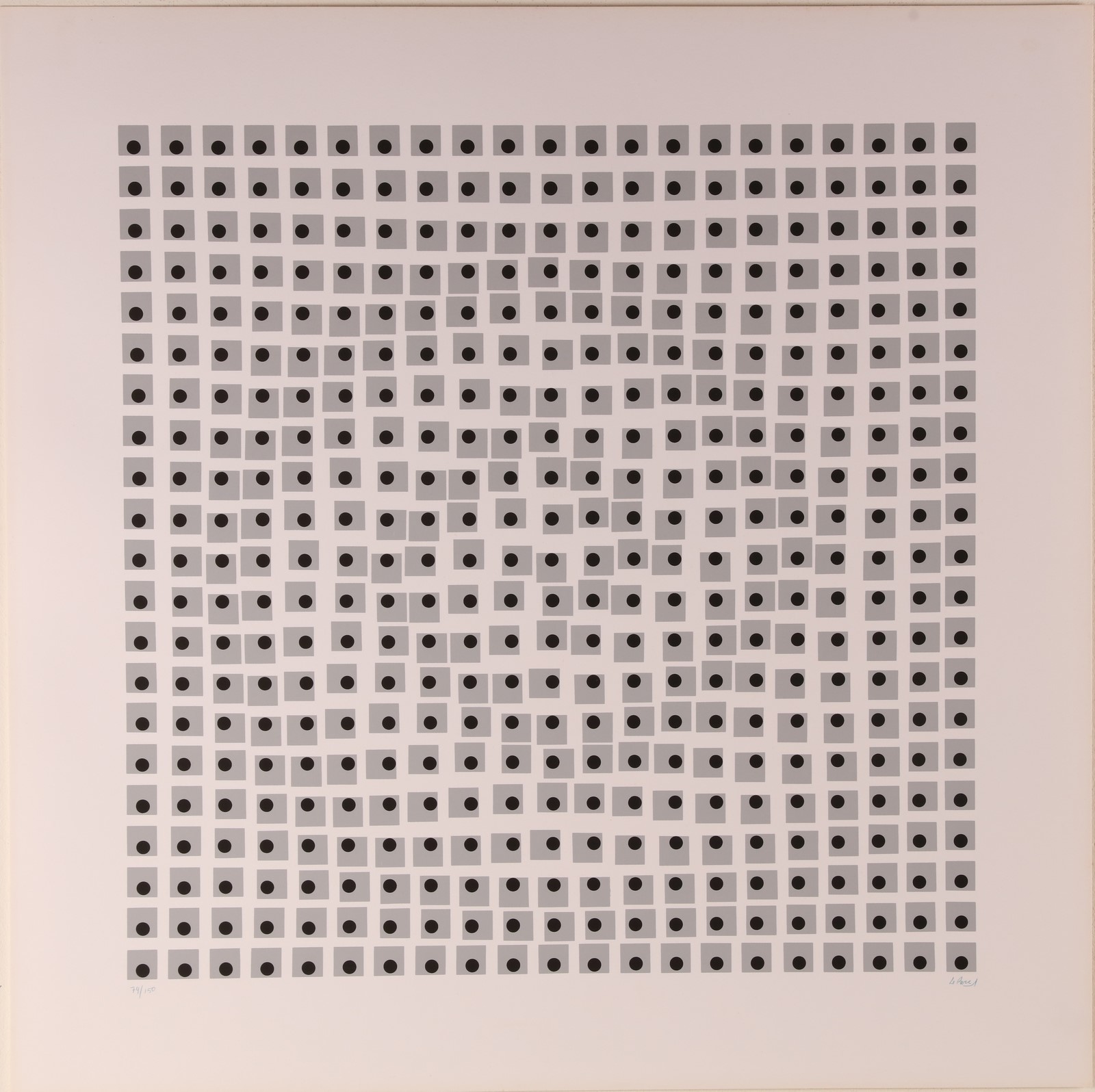 GRAV (Groupe de Recherche d'Art Visuel) Grav, Groupe de recherche d'art visuel 1960-1968. (6 fogli). Serigrafia (cartella completa). Cm 70,00 x 70,00. 51/150. Cartella realizzata in occasione della mostra retrospettiva, Lago di Como, 20/30 settembre 1975 a cura di Luciano Caramel del Groupe de Recherche d'Art Visuel ( Garcia Rossi, Le Parc, Morellet, Sobrino, Stein, Yvaral). Tutte le opere presentano firma e tiratura in basso a matita. Editore: Galleria Team Colore, Milano. Stampatore: Sam Villa, Milano.