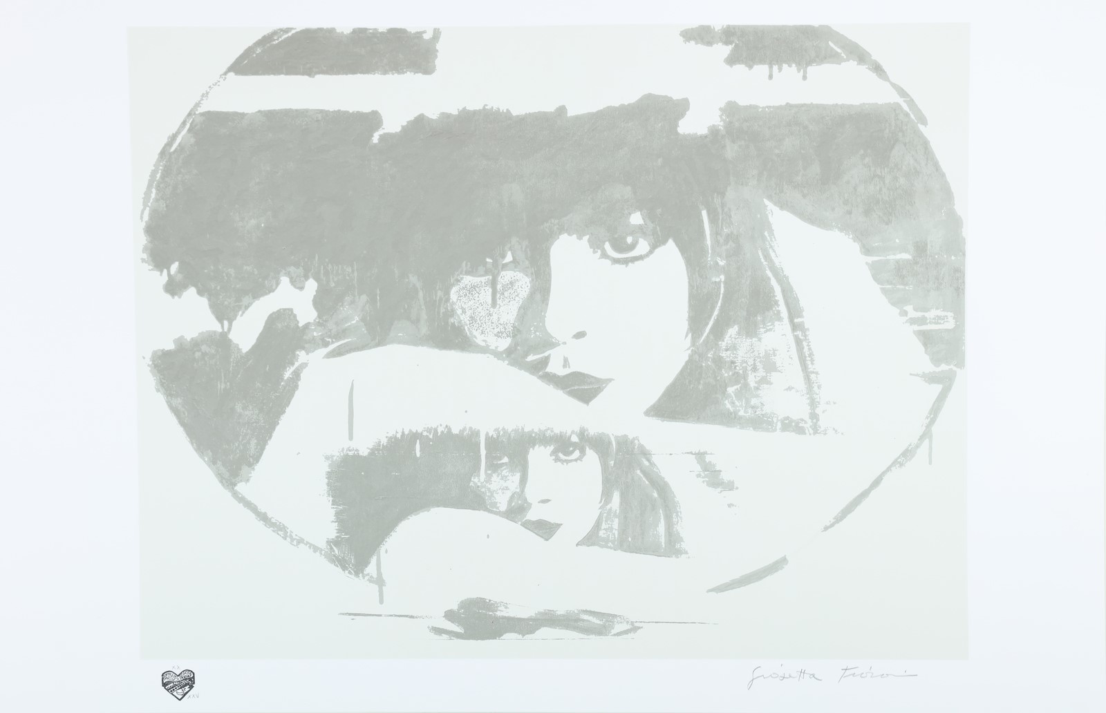 FIORONI GIOSETTA (n. 1932) Double Liberty Silver. . Cm 100,00 x 70,00. XX/XXV. Editon and signature lower in pencil. Parise Fioroni archive's stamp lower left. Parise Fioroni archive's authenticity certificate. Artwork realized for the 50th anniversary of the Spirale Editore, Milan.