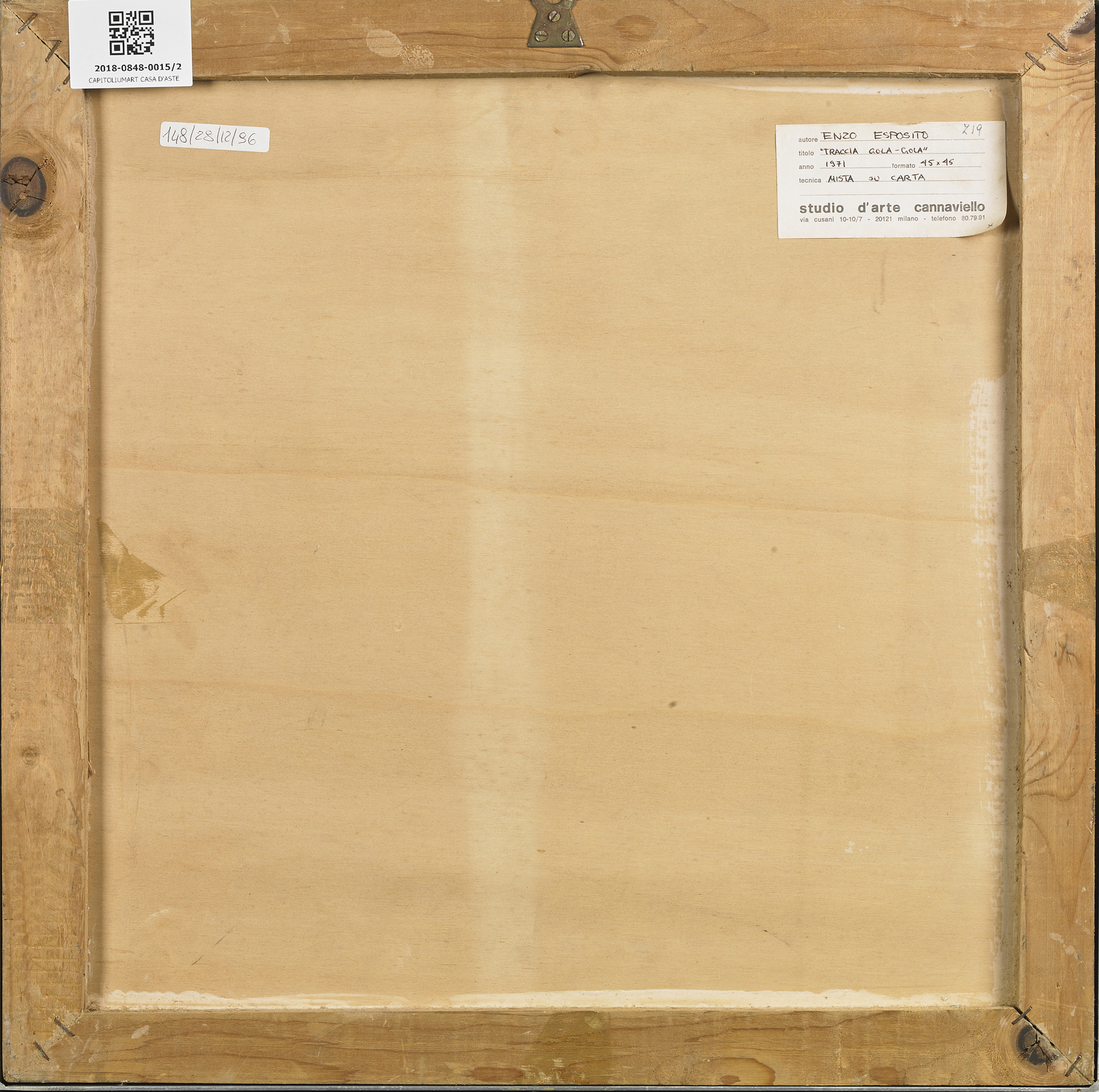 ESPOSITO ENZO (n. 1946) Dittico.Traccia gola-gola. 1971. Tecnica mista su carta. Cm 45,00 x 45,00. Al retro cartiglio descrittivo Studio d'arte Cannaviello, Milano. Cornice presente