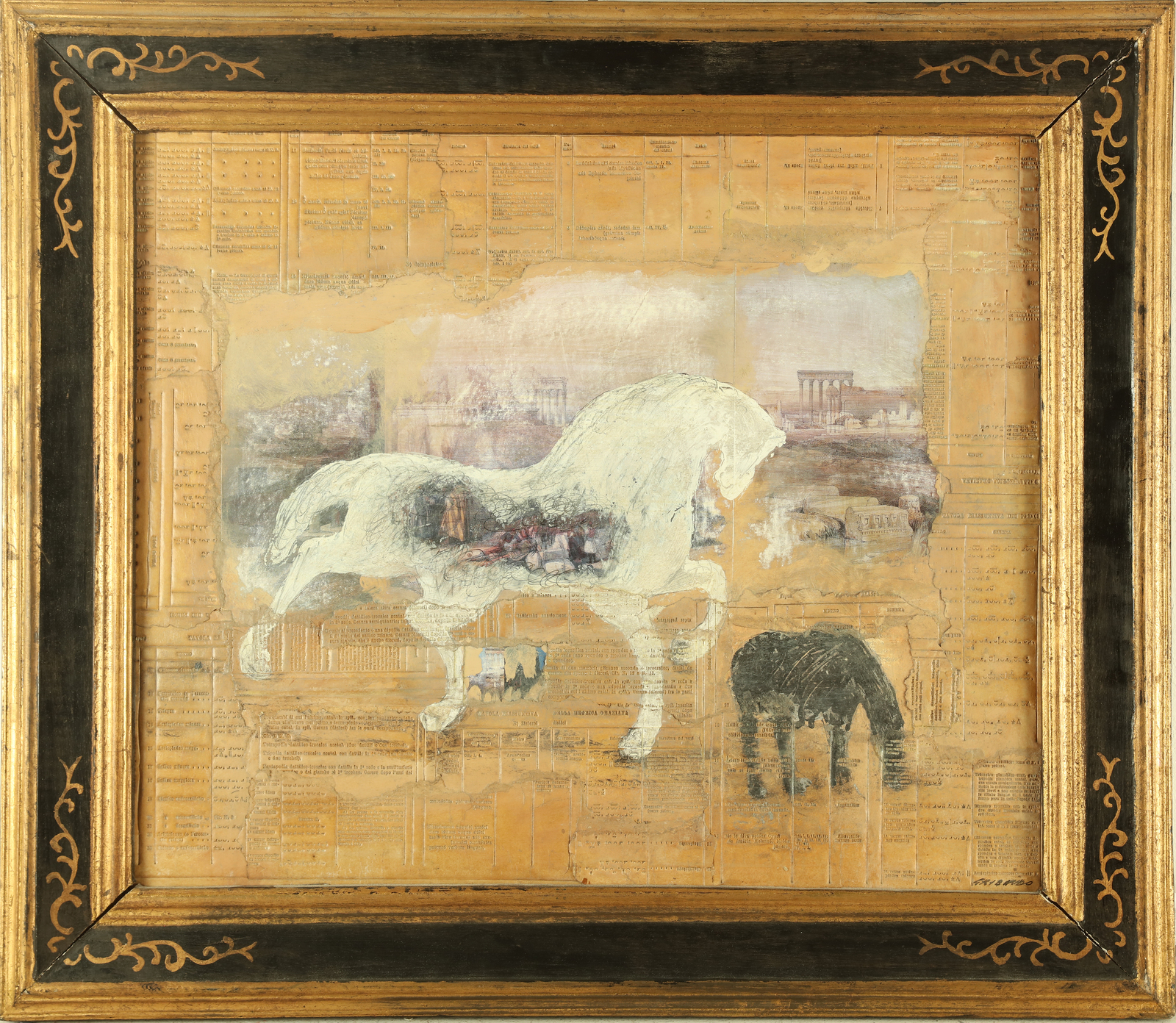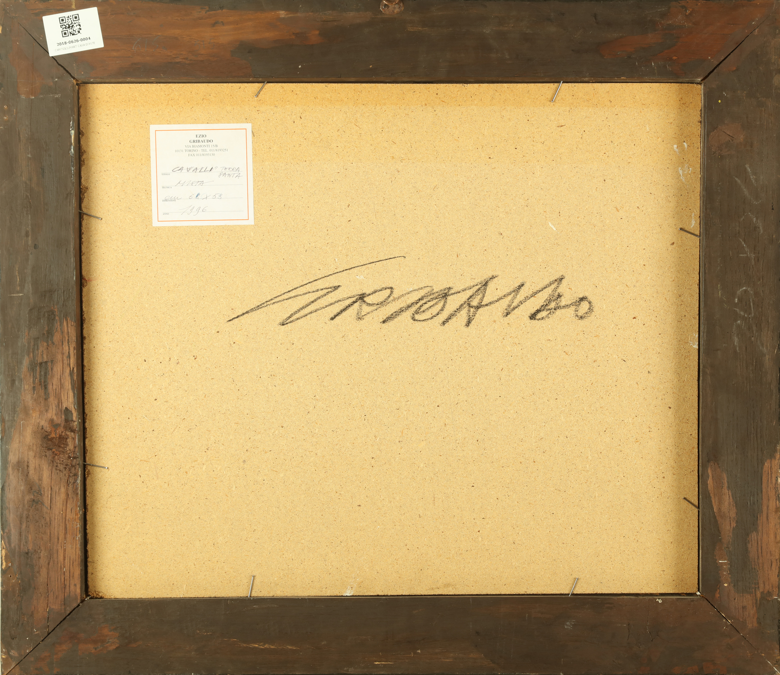 GRIBAUDO EZIO (n. 1929) Horses. 1996. Mixed media on paper. Cm 50,00 x 60,00. Signature lower right. At the back signature and artist's label. Cornice presente