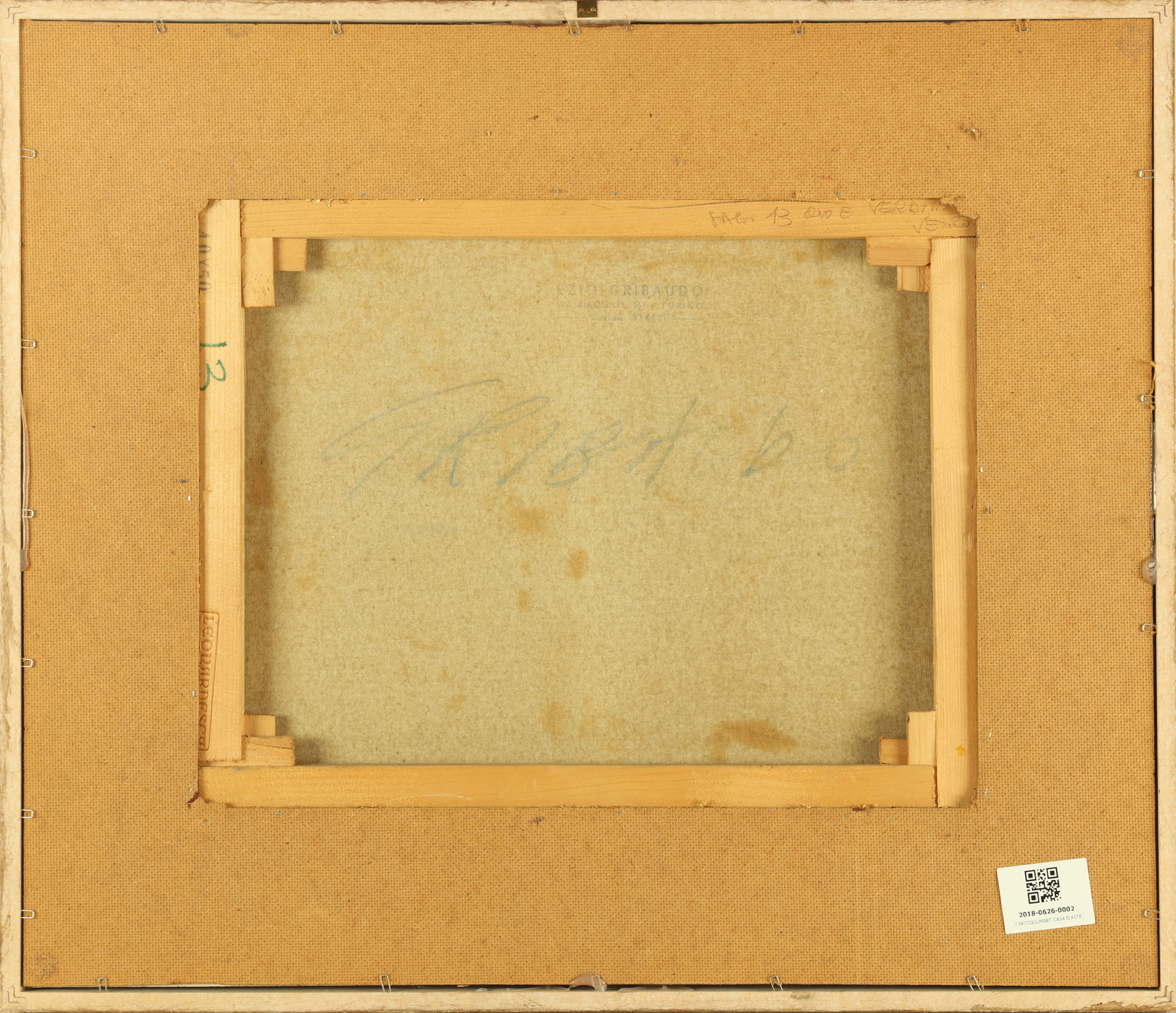 GRIBAUDO EZIO (n. 1929) Untitled. 1977. Oil on canvas . Cm 50,00 x 40,00. Year lower left. Signature lower right. At the back signature and artist's stamp. Cornice presente