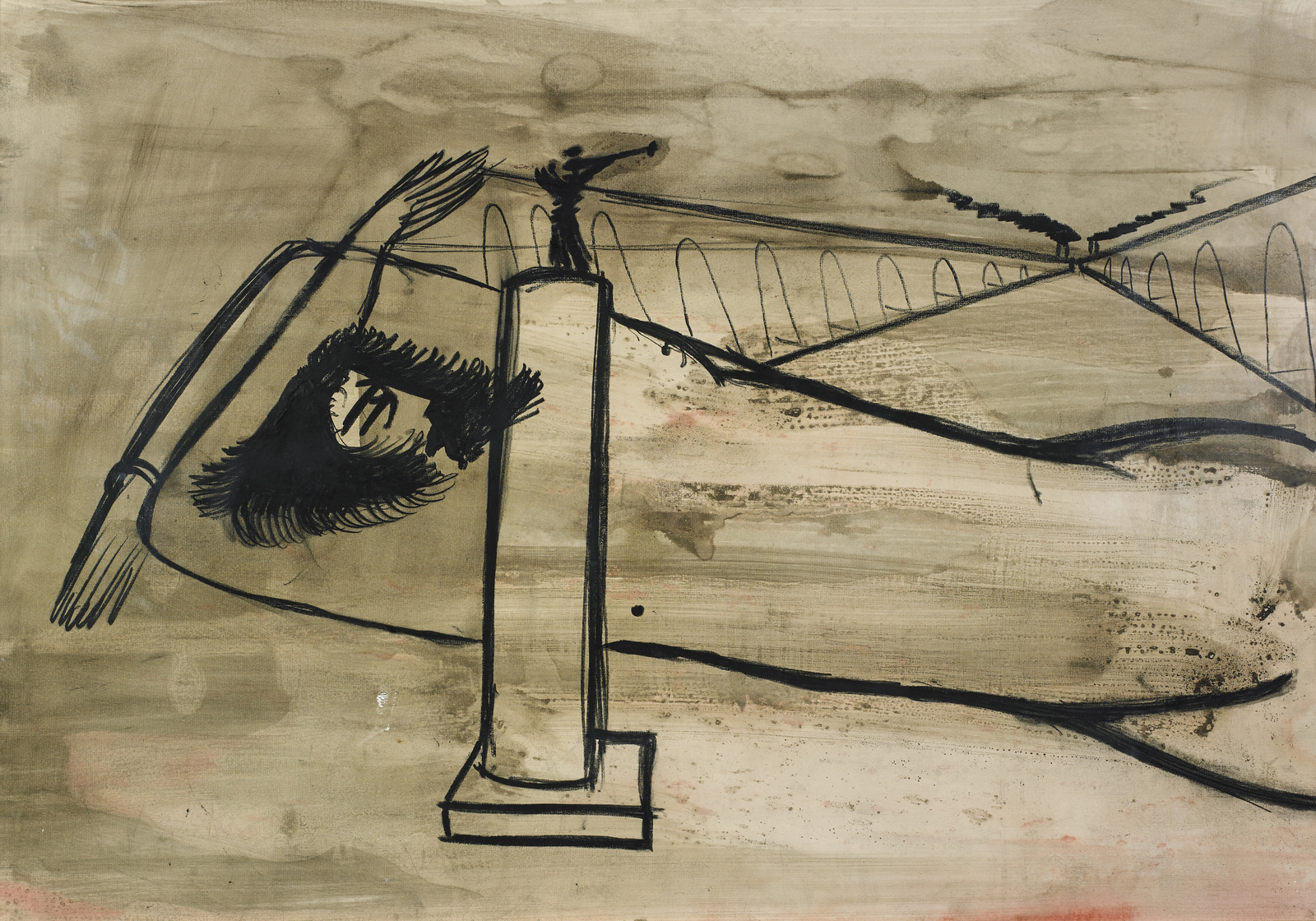 DEL RE MARCO (n. 1950) Senza titolo. Tecnica mista su carta. Cm 100,00 x 70,00. Presente lieve strappo in alto a sinistra. Cornice presente