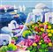 FACCINCANI ATHOS (n. 1951) Santorini. Oil on canvas . Cm 30,00 x 30,00. Signature lower right. Title at the back. Artist's authenticity certificate on photo.