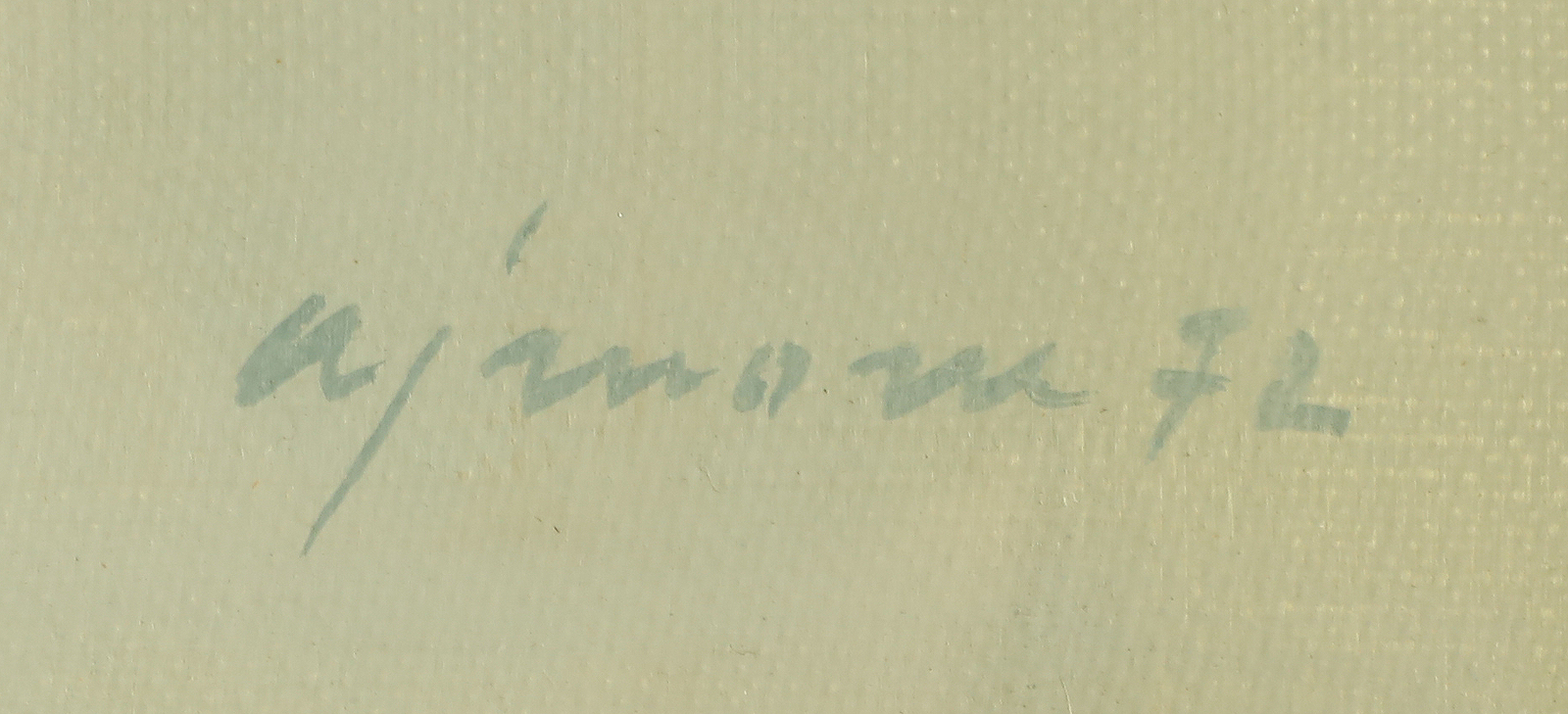 AJMONE GIUSEPPE (1923 - 2005) Trasparencies. 1972. Oil on canvas . Cm 53,00 x 63,00. Signature and year lower right. At the back title, signature, year and Scettro Art Gallery's label. Cornice presente