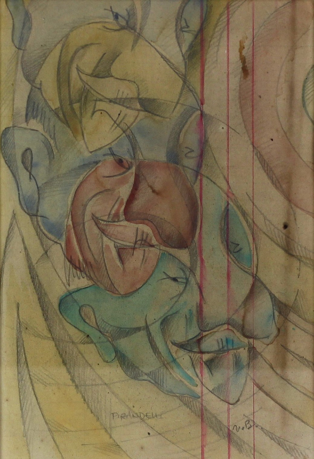 UBERTO BONETTI, Caricatura di Luigi Pirandello, Tecnica mista su carta Anni...