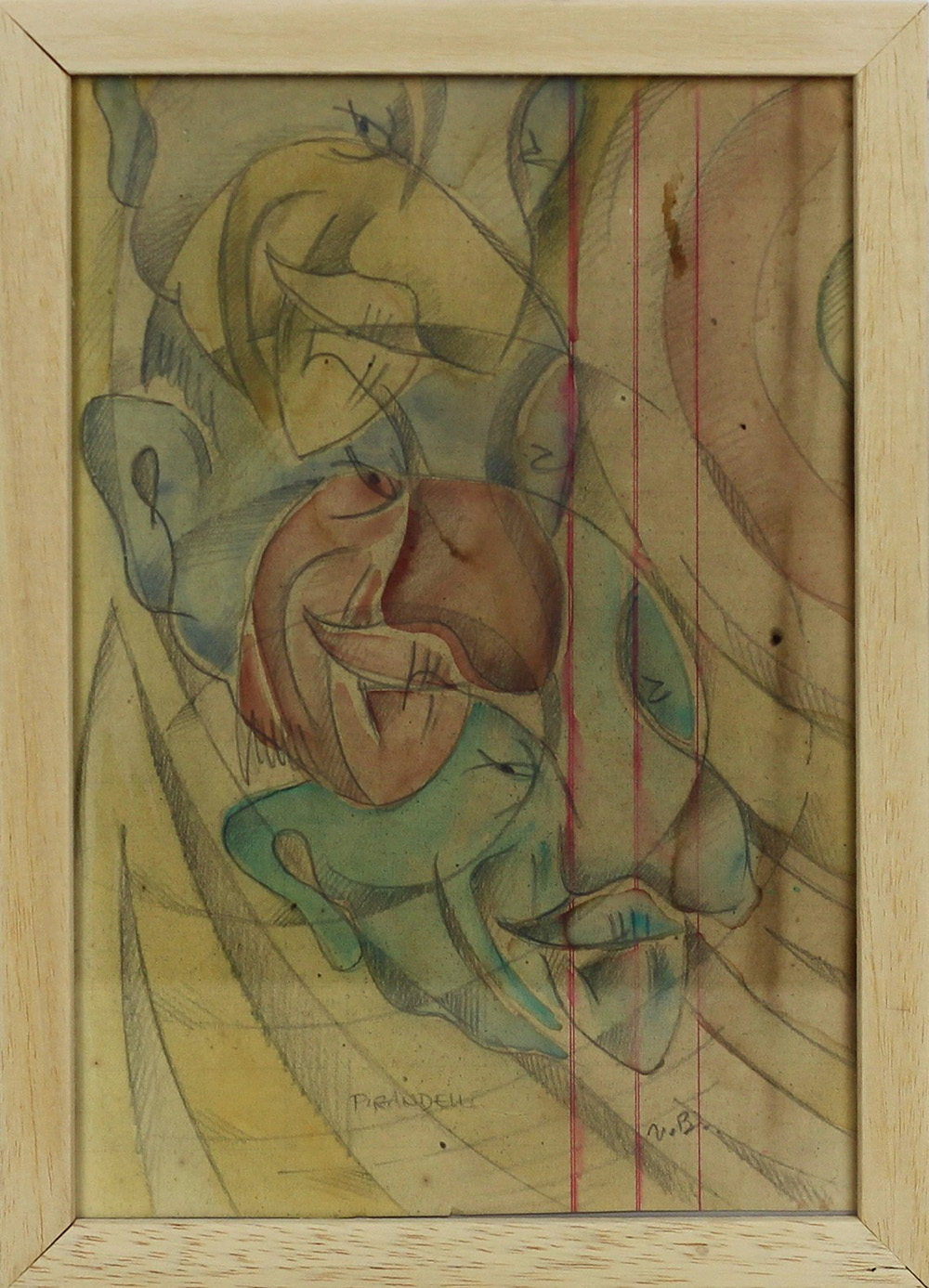 UBERTO BONETTI, Caricatura di Luigi Pirandello, Tecnica mista su carta Anni 30 Dim. 16x23 Opera archiviata presso l'Archivio Adriana Bonetti N.1116 Firmato in basso a dx