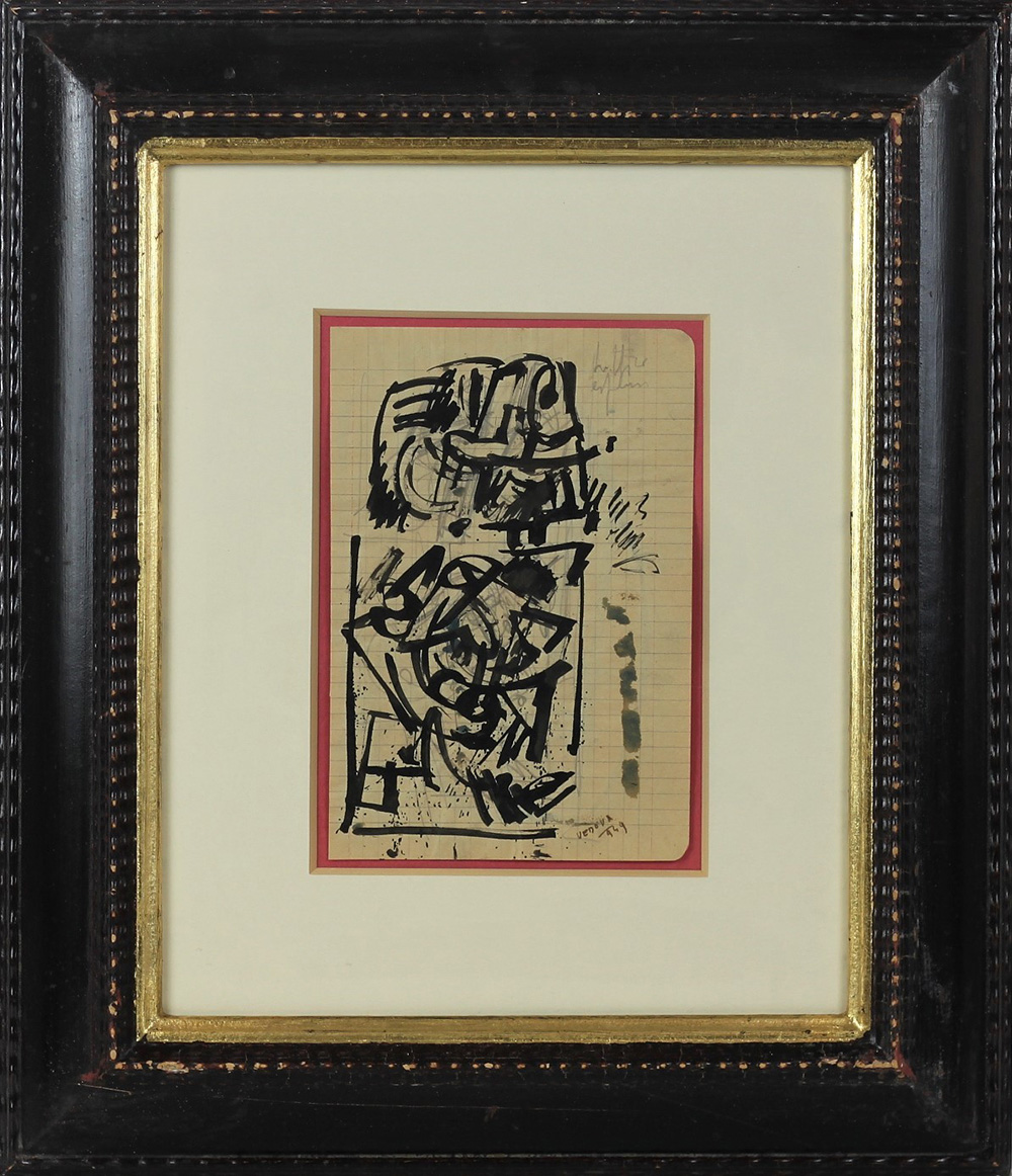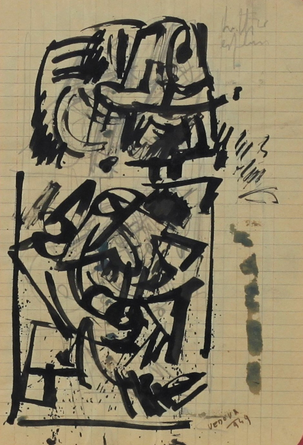 EMILIO VEDOVA, Dalla cartella "5 disegni di Vedova" N.6, 1/5, Inchiostro su carta Anno 1949 Dim.20,4x14 Autentica su foto dell'artista Opera Archiviata al numero 980 presso Archivio Emilio Vedova Venezia in data 10/01/2004 Firmato e datato in basso a dx