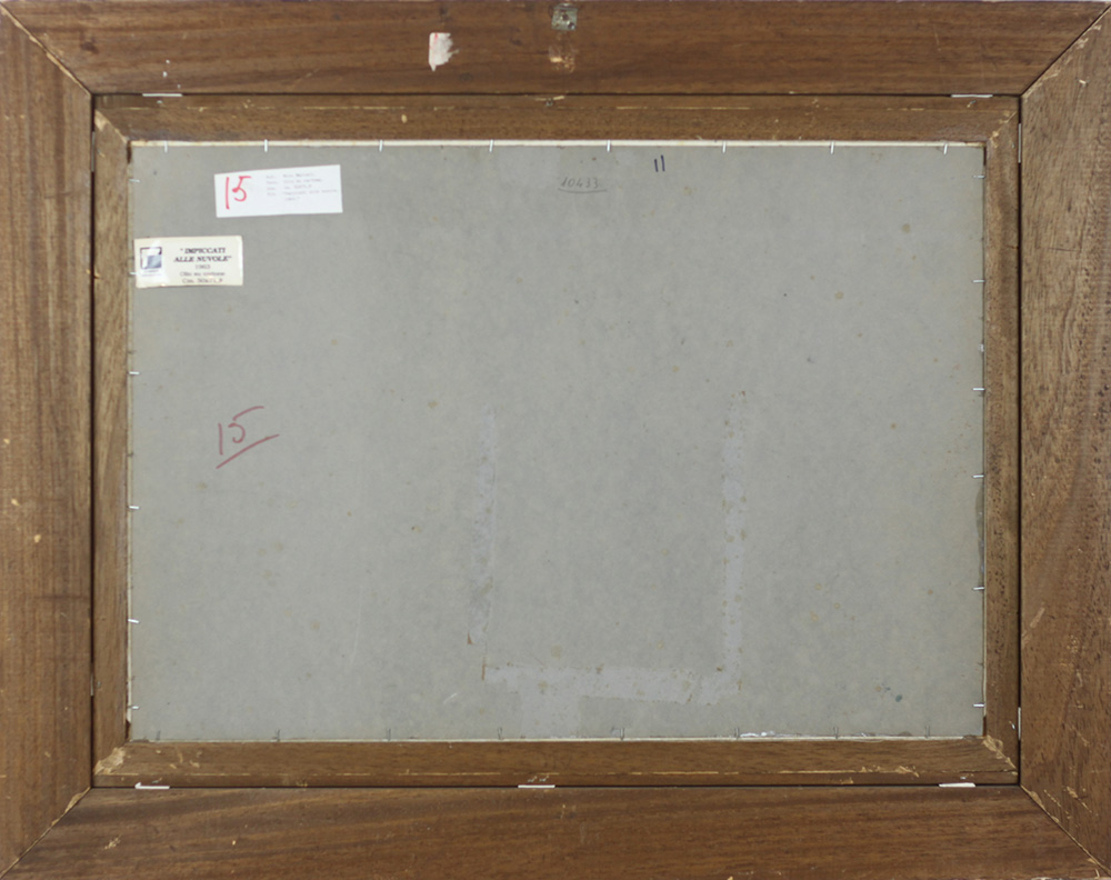 MINO MACCARI, Impiccati alle nuvole, Olio su cartone Anno 1963 Dim.50x71,8...