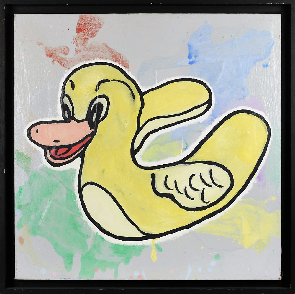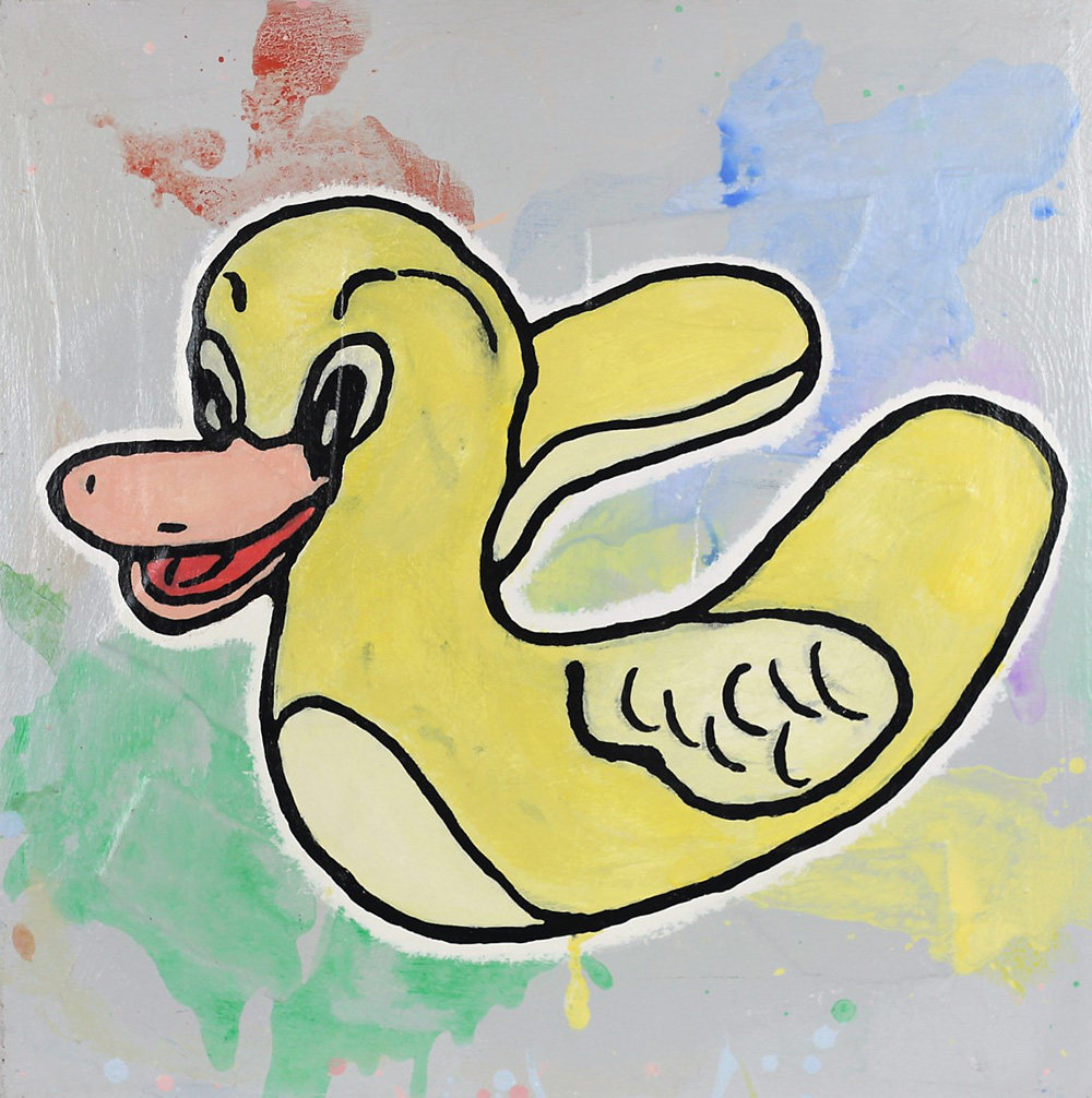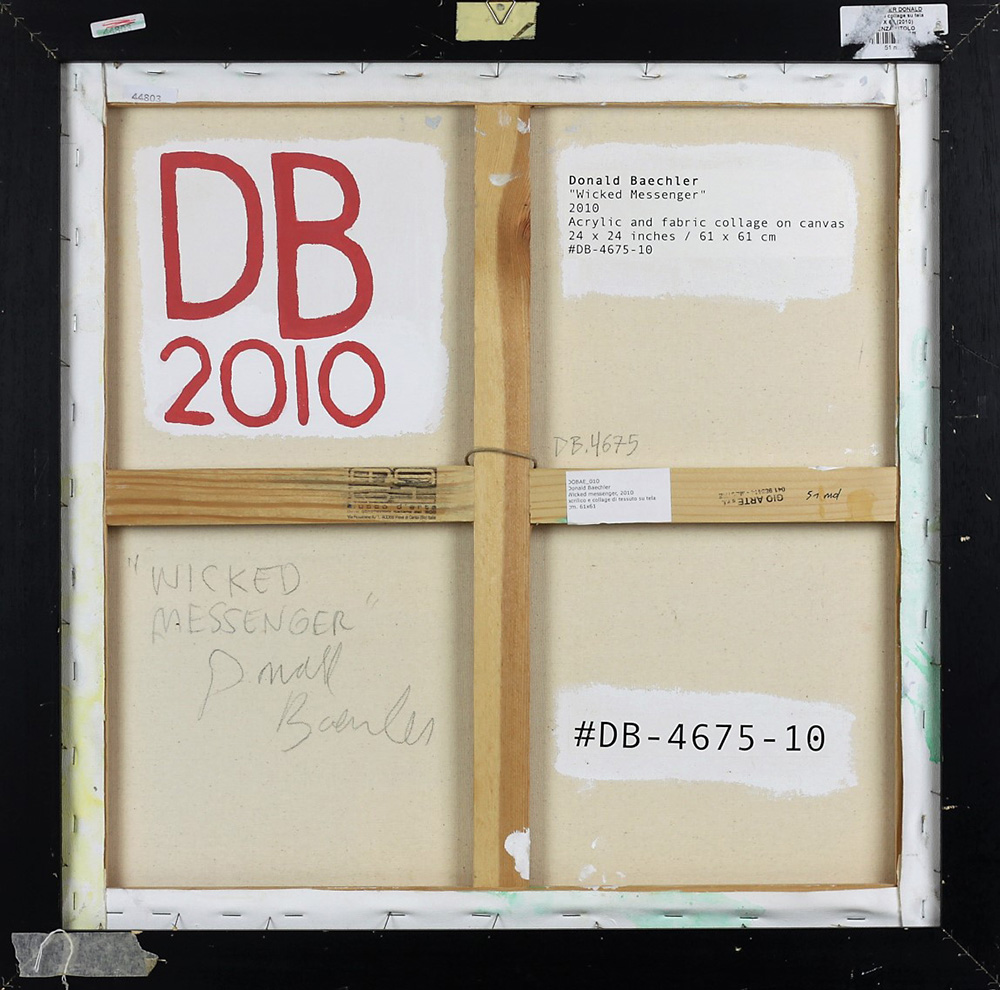 HARTFORD BAECHLER, Wicked messenger, Acrilico e collage di tessuto su tela Anno 2010 Dim.61x61 Al verso titolo, anno e firma