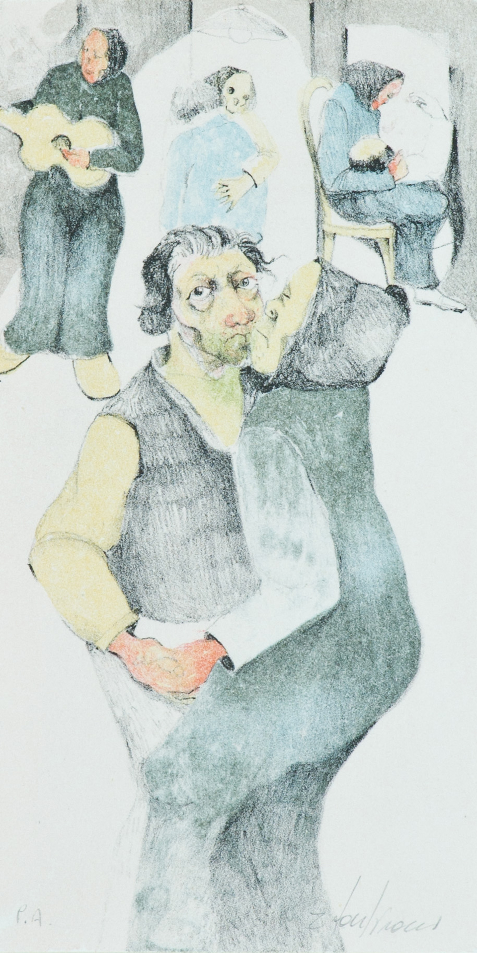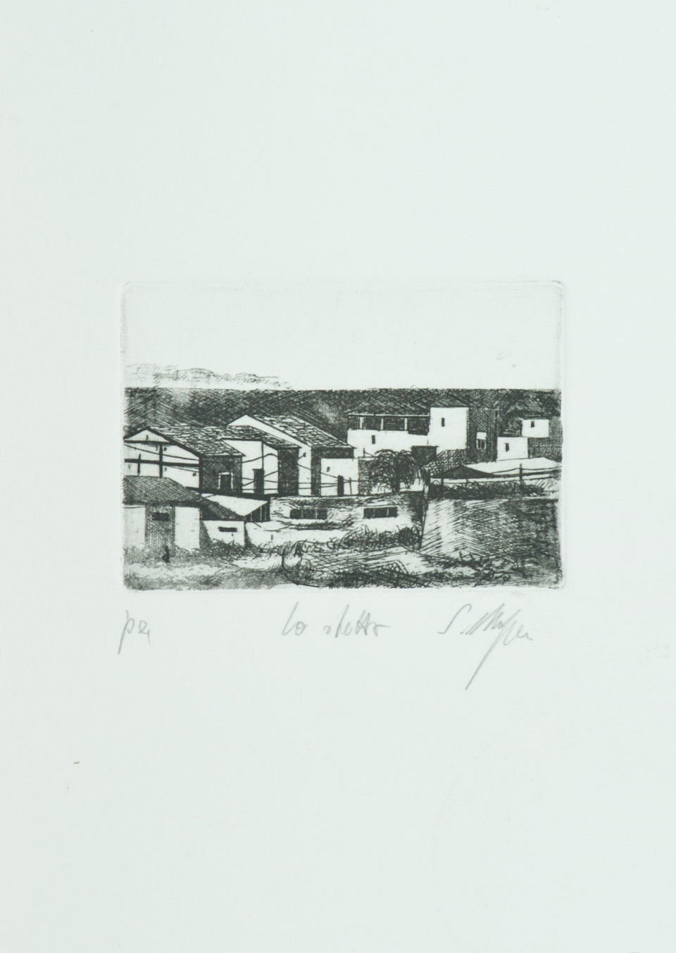 Fontirossi Roberto, Magazzini Salvatore Lotto unico di due Opere - "Roberto Fontirossi", Figure, Litografia su carta, cm. 22,5x11,5, es. P.A., firmato in basso a destra; - "Salvatore Magazzini", Lo stretto, Acquaforte di cm. 7,5x10,5, su carta di cm. 27x19, es. P.A., firma e titolo in basso a destra.