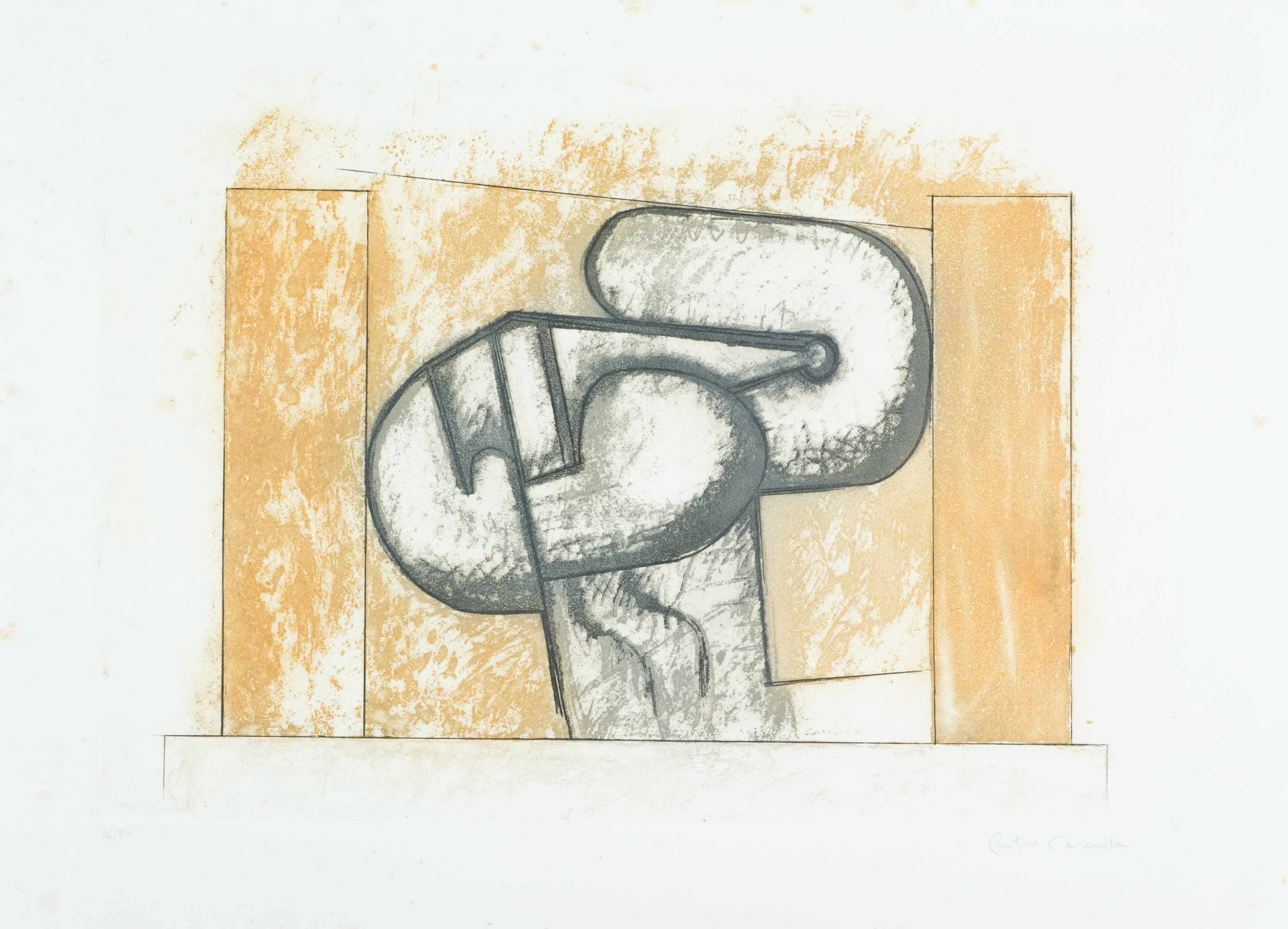 Pietro Cascella Senza titolo Acquaforte di cm. 45x63, su carta di cm. 60x80, es. 34/80 La carta presenta fioriture. Firma in basso a destra, tiratura in basso a sinistra.