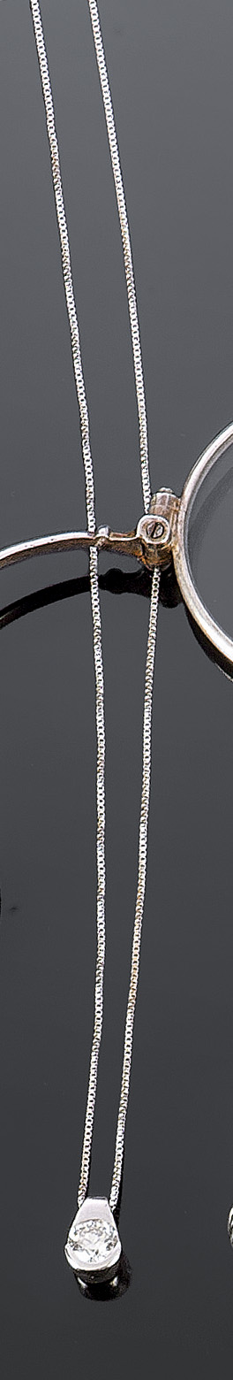PUNTO LUCE Ciondolo e catena in oro bianco con diamante taglio brillante rotondo per complessivi ct 0,50 ca Peso gr. 2,9