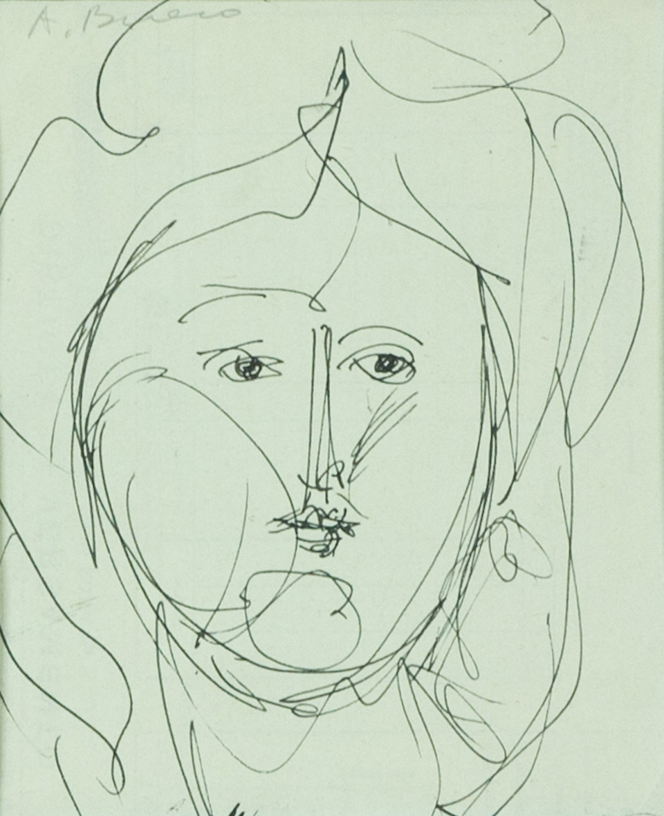 Antonio Bueno Volto, 1968 c.a. Penna su carta, cm. 17x13,5 Firmato in alto a sinistra. Autentica della figlia Maria Isabella Bueno, su foto.