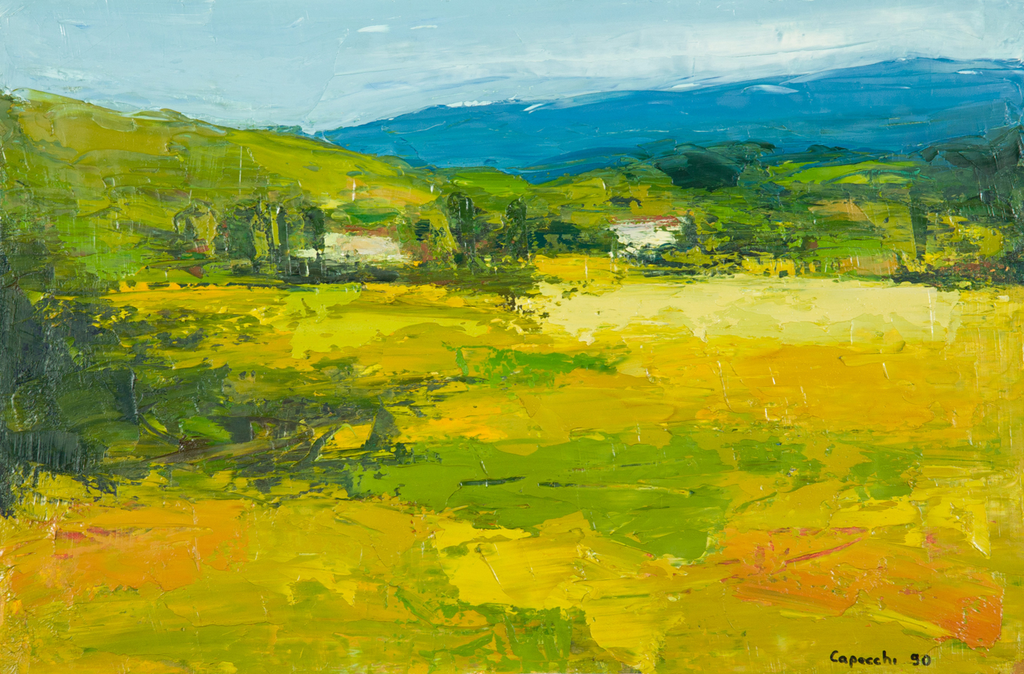 Carlo Capecchi Paesaggio, 1990 Olio su tela, cm. 40x60 Firma e data in basso a destra. Sul verso: firma, data e titolo.