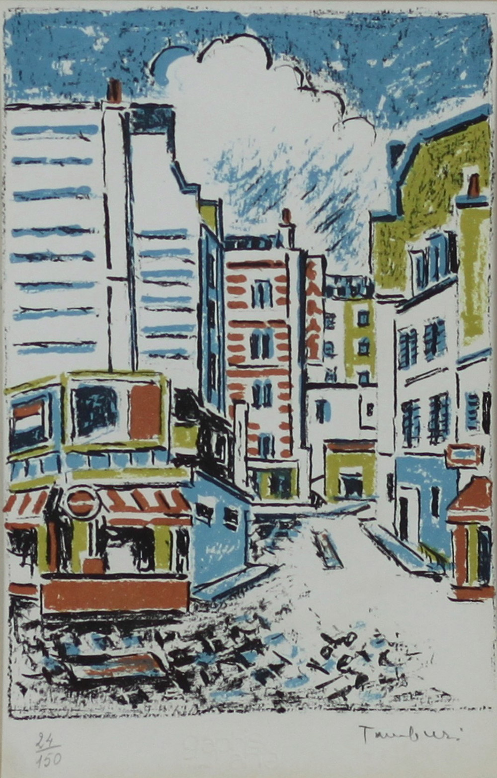 ORFEO TAMBURI, Senza titolo, Litografia Dim.25x17 Esemplare 24/150 Timbro a secco in basso al centro Tiratura in basso a sx Firmato in basso a dx