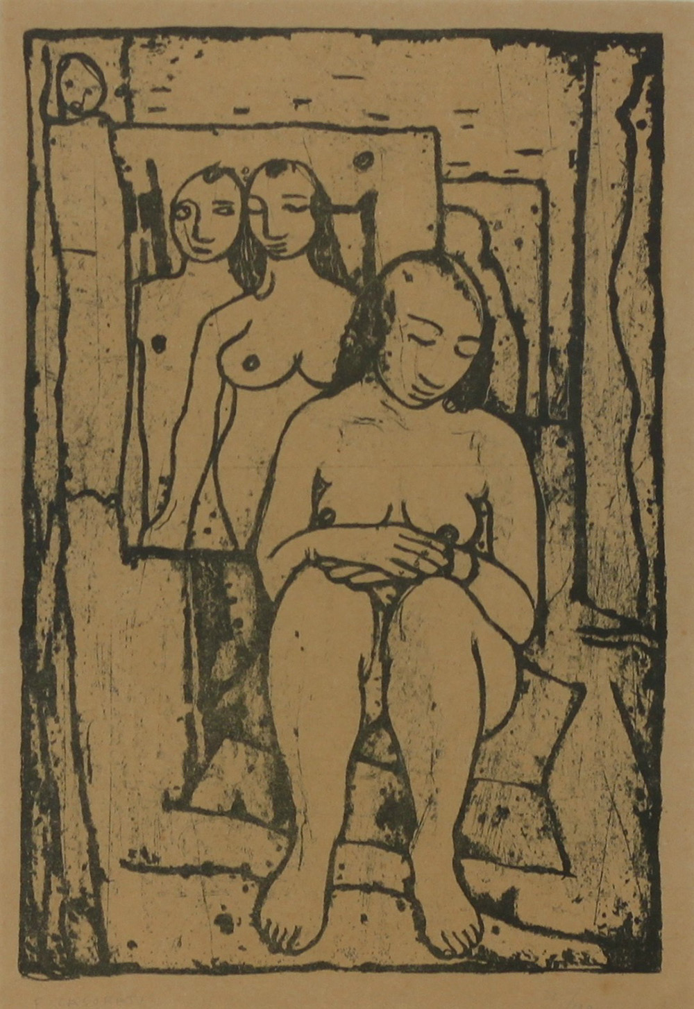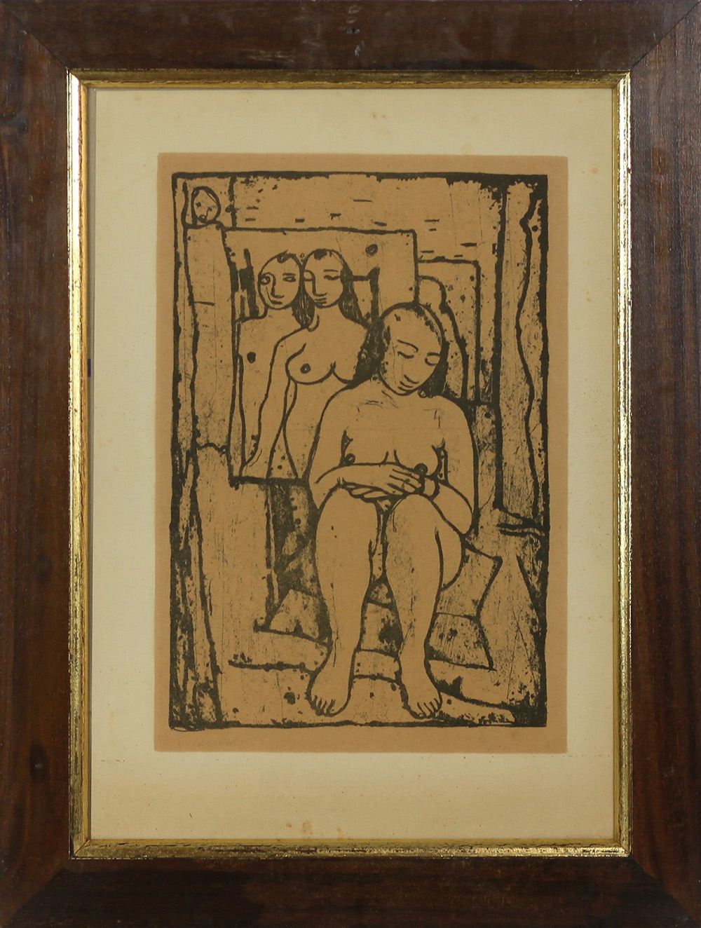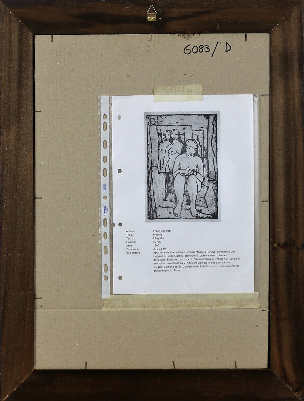 FELICE CASORATI, Modella nello studio, Litografia Anno 1946 Dim.49x34 Esemplare 22/100 Timbro a secco in basso a dx Tiratura in basso a dx Firmato in basso a sx
