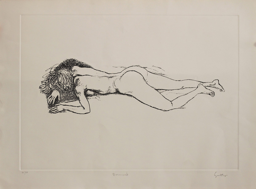 RENATO GUTTUSO, Dormiente, Acquaforte Dim. 50x70 Opera senza cornice Esemplare 32/90 Tiratura in basso a sx Firmato in basso a dx