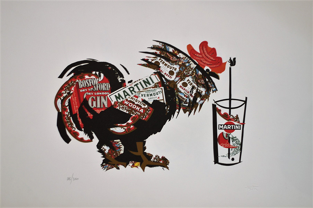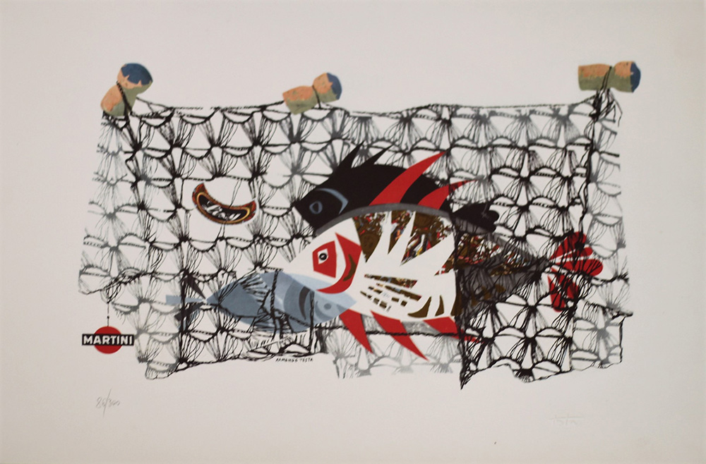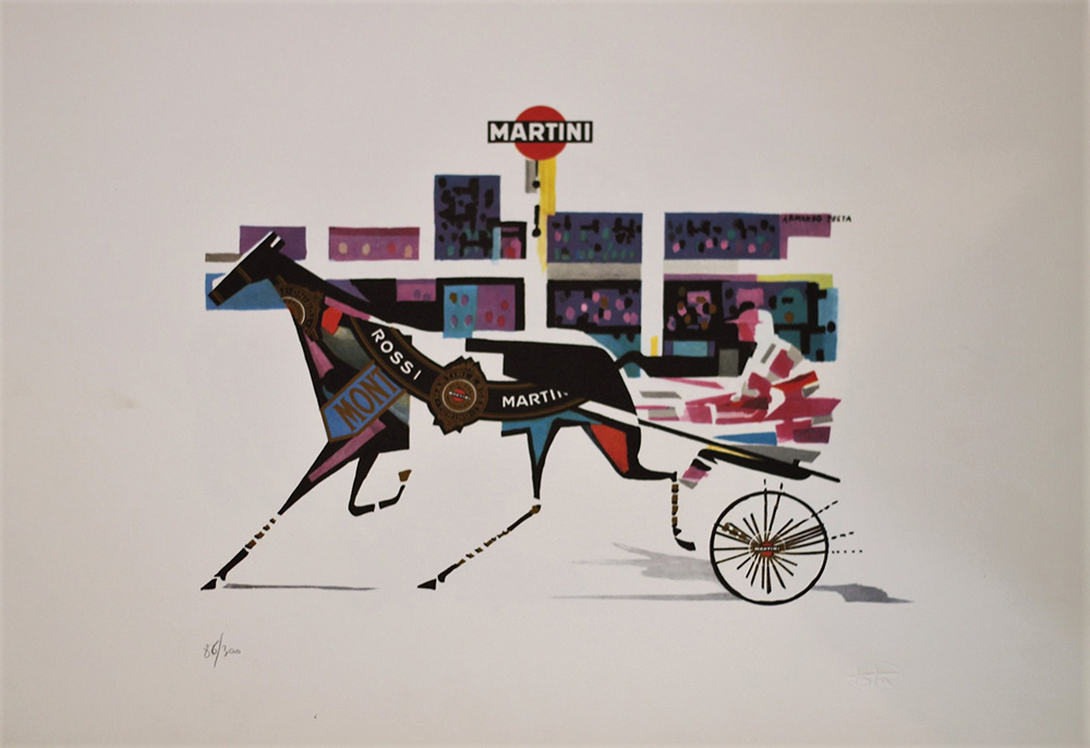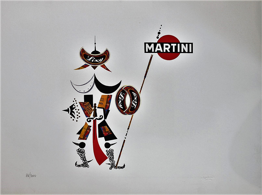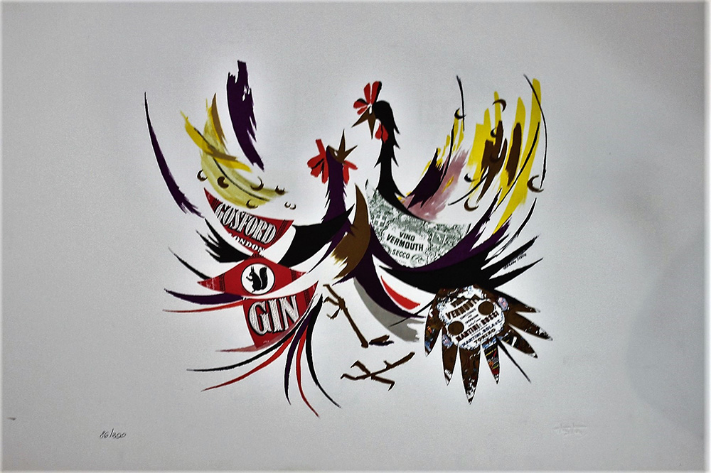 ARMANDO TESTA, Senza titolo, Cartellina contenente 5 Litografie di collage per confezioni natalizie Martini Anno 1949 Dim. 35x50 Esemplare 86/300 Tiratura in basso a sx Timbro a secco i basso a dx