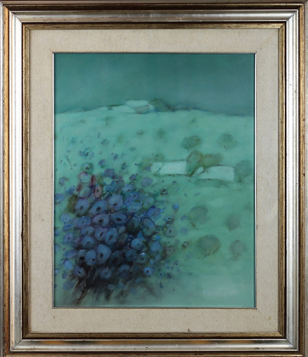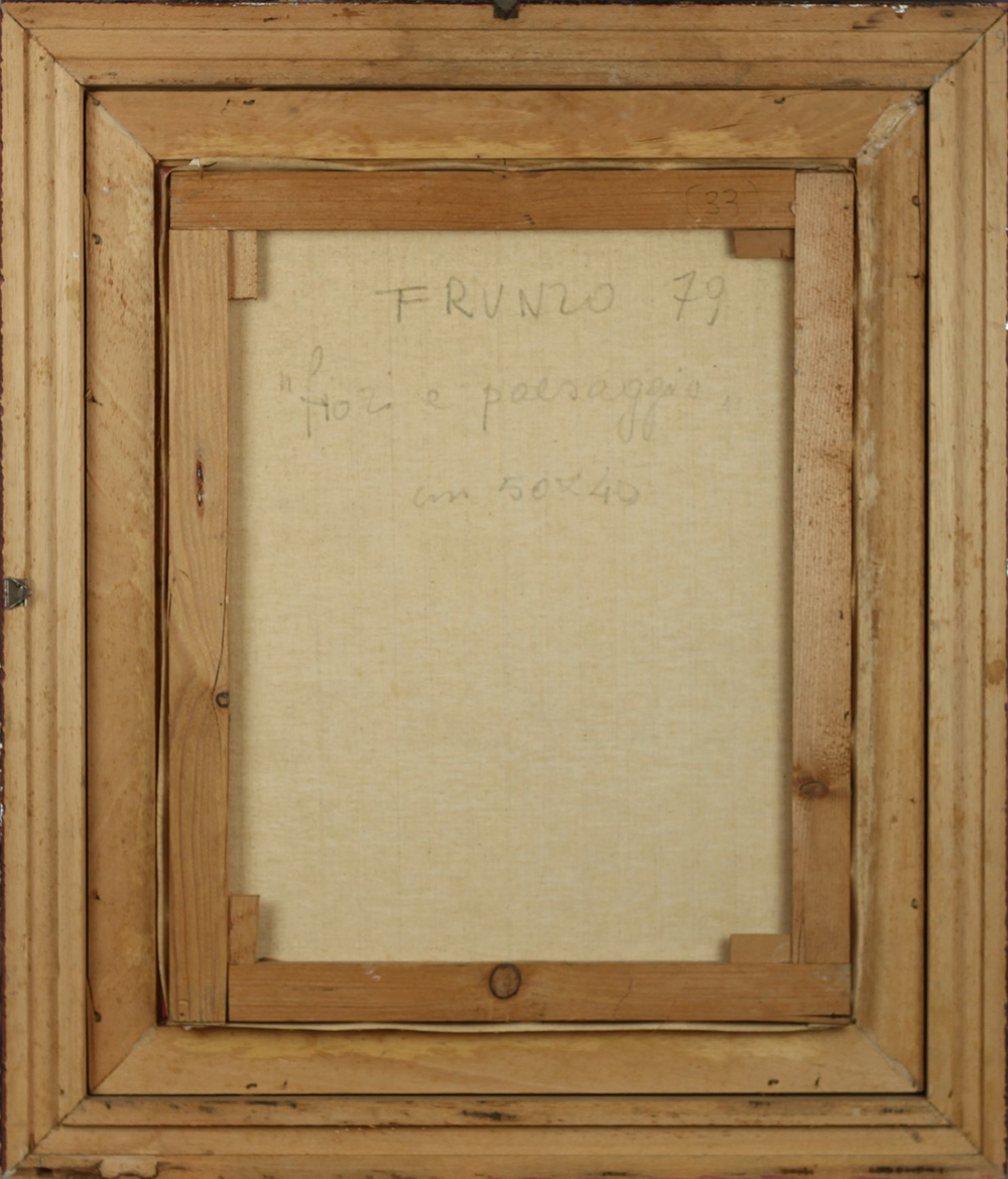 VINCENZO FRUNZO, Fiori e paesaggio, Olio su tela Anno 1979 Dim. 50x40 Al verso ?rma data e titolo Datato e ?rmato in basso a dx