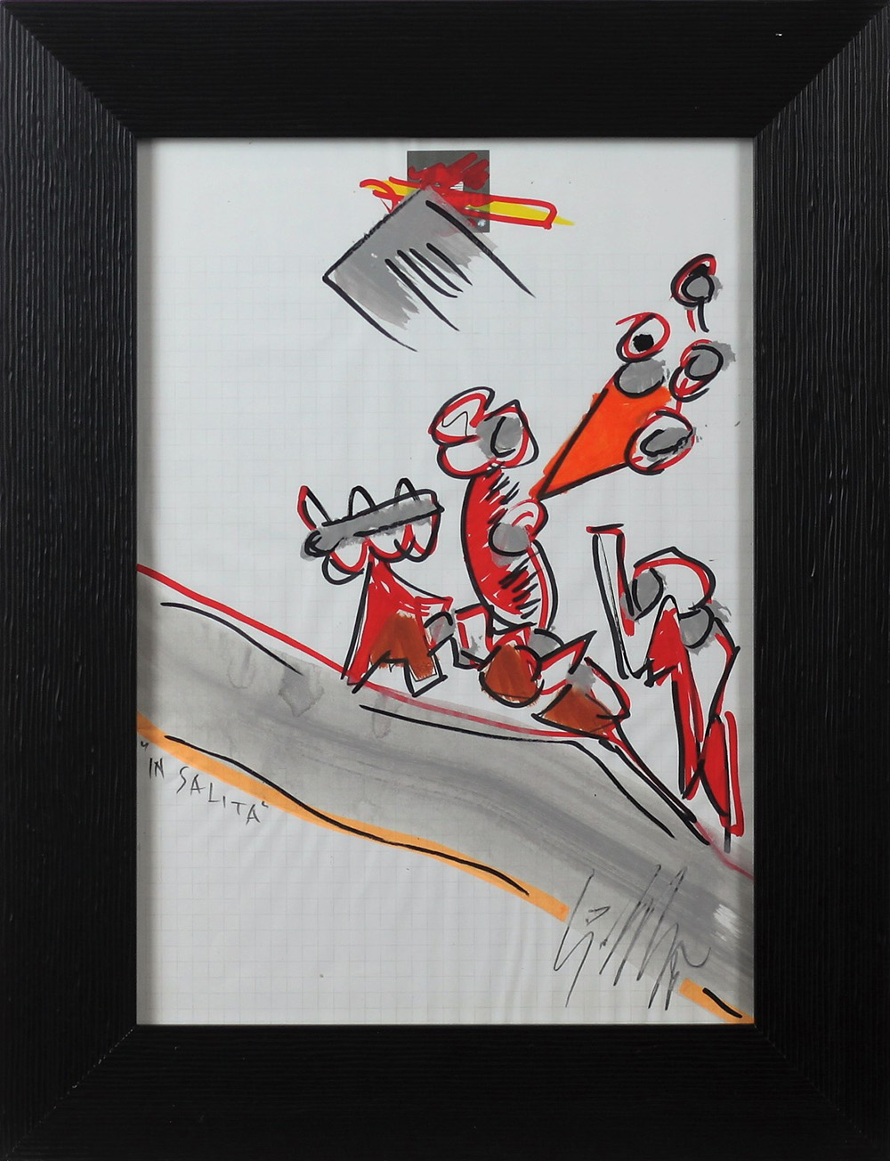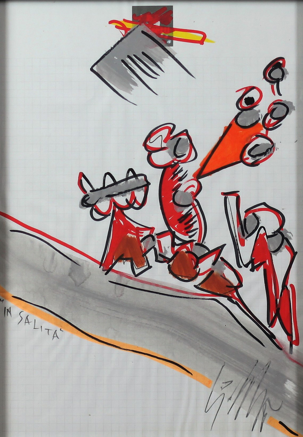 SERGIO DANGELO, In salita, Tecnica mista su carta Dim.29x21 Firmato in basso a dx