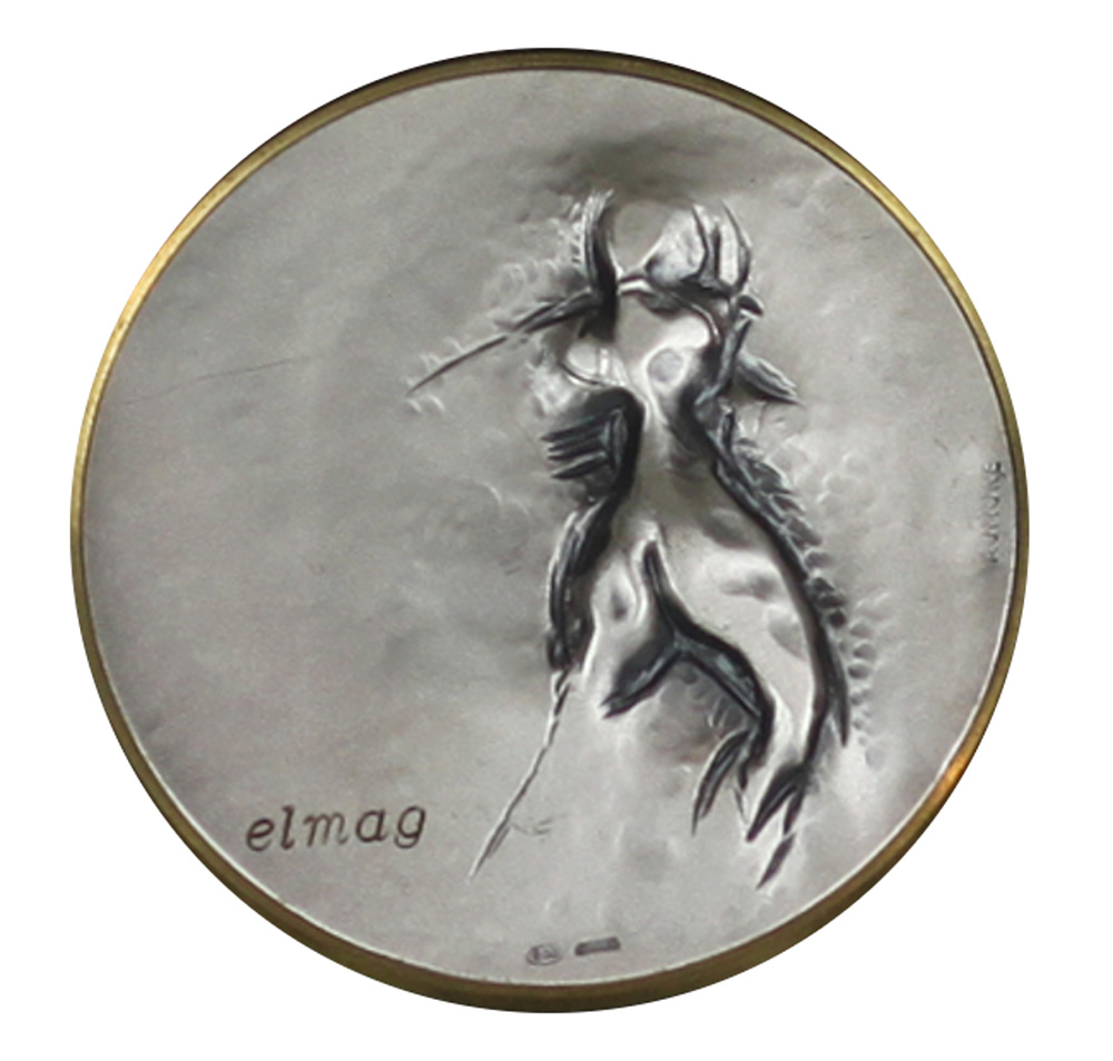 GIUSEPPE AJMONE, Fermacarte, Fermacarte in argento e ottone Diam. 6 Firmato al lato dx
