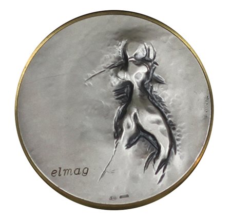 GIUSEPPE AJMONE, Fermacarte, Fermacarte in argento e ottone Diam. 6 Firmato...